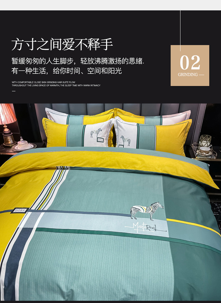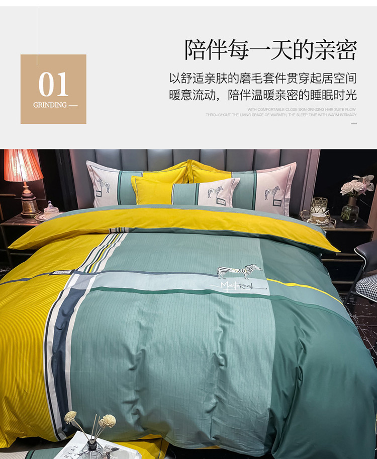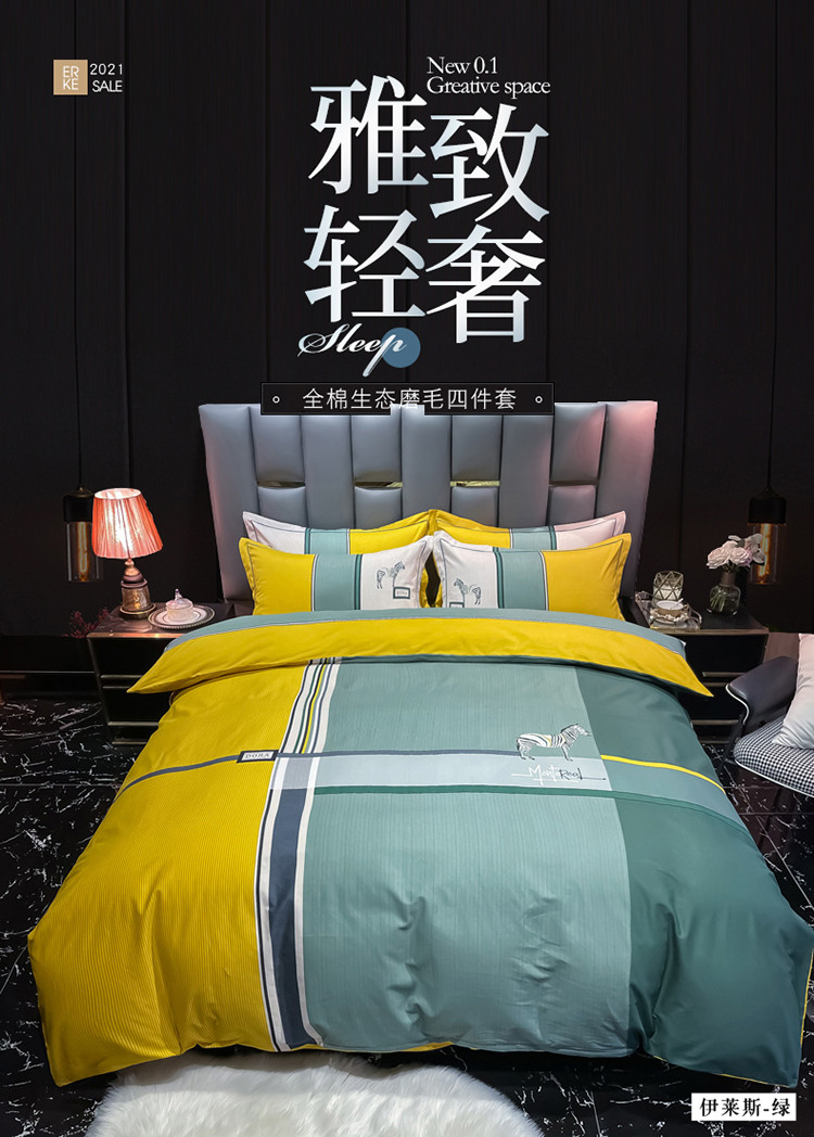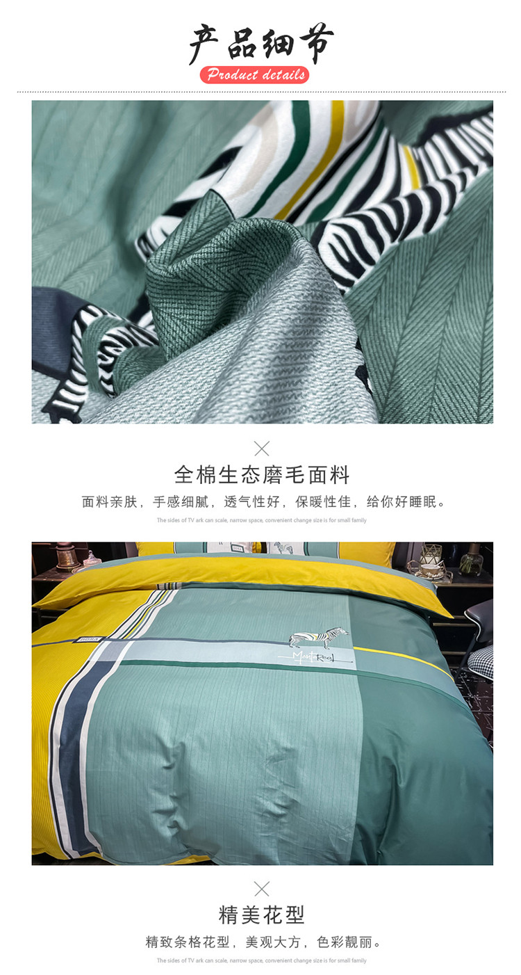当前位置: 91家纺网 > 商品网购 > 床品套件 > 四件套 > 普通磨毛四件套 > 金爱家 2021新款大版磨毛条格简约四件套伊莱斯-绿