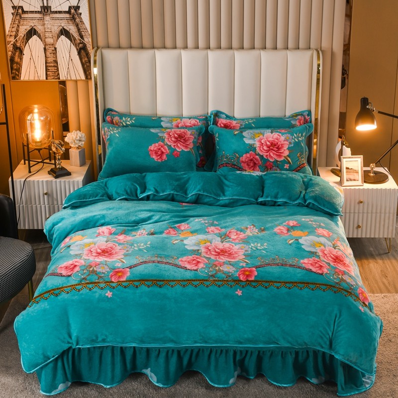 商品名称:爱洛家纺2021新款金貂绒四件套 鸟语花香-蓝