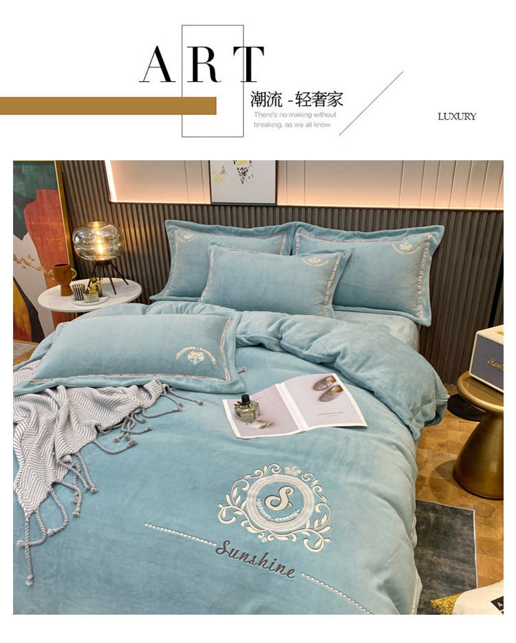 (总)星尚家纺 2024新款全消光A类230g牛奶绒韩版绣花绒四件套-绚丽花语,豆沙粉,浪漫紫,雾霾蓝,樱花粉,晨雾绿