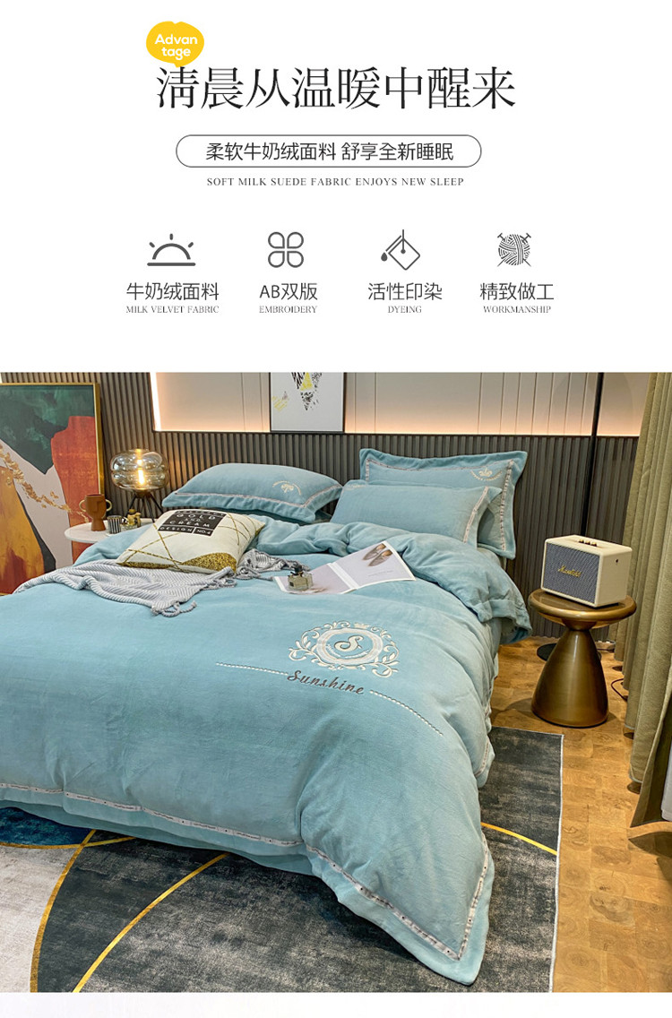 (总)星尚家纺 2025新款全消光A类母婴级加厚保暖牛奶绒绣花刺绣四件套,豆沙粉,卡其棕,梵星绿,孔雀蓝,高级灰,香芋紫,樱花粉