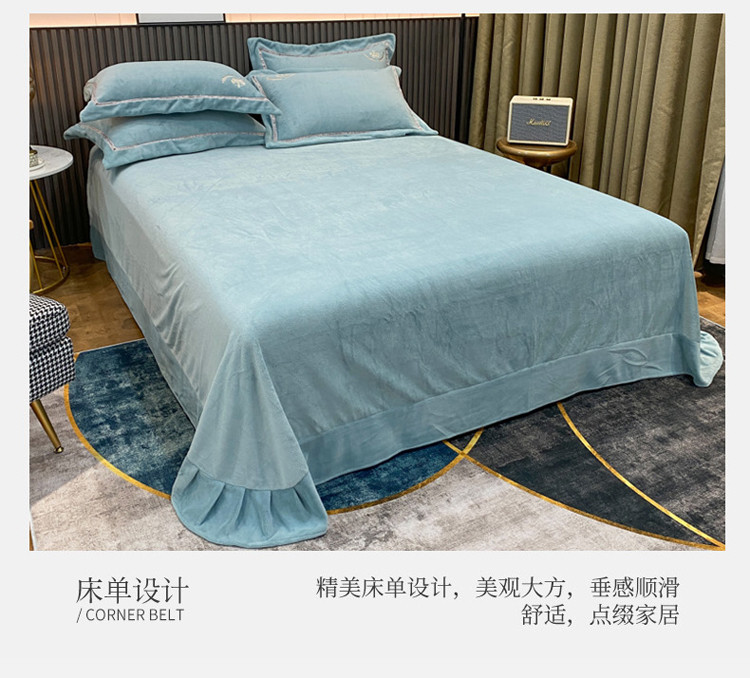 (总)星尚家纺 2024新款加厚保暖全消光牛奶绒夹棉床裙四件套-玫瑰之恋,粉玉,寐紫,浅蓝,水绿