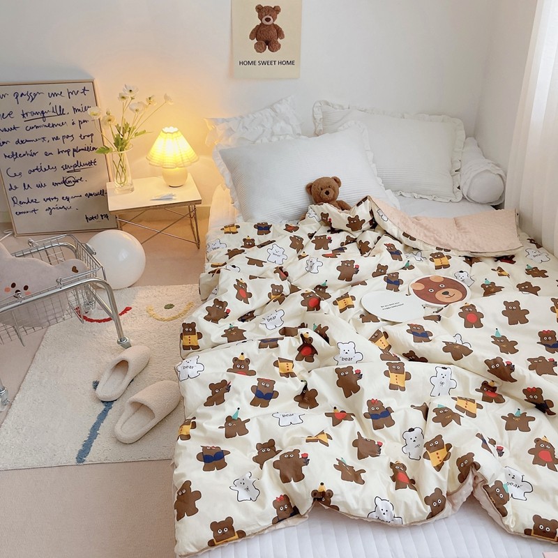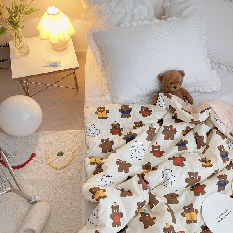 星期八 2021新款韩国超ins进口安抚豆豆被子春秋被 机器熊棕