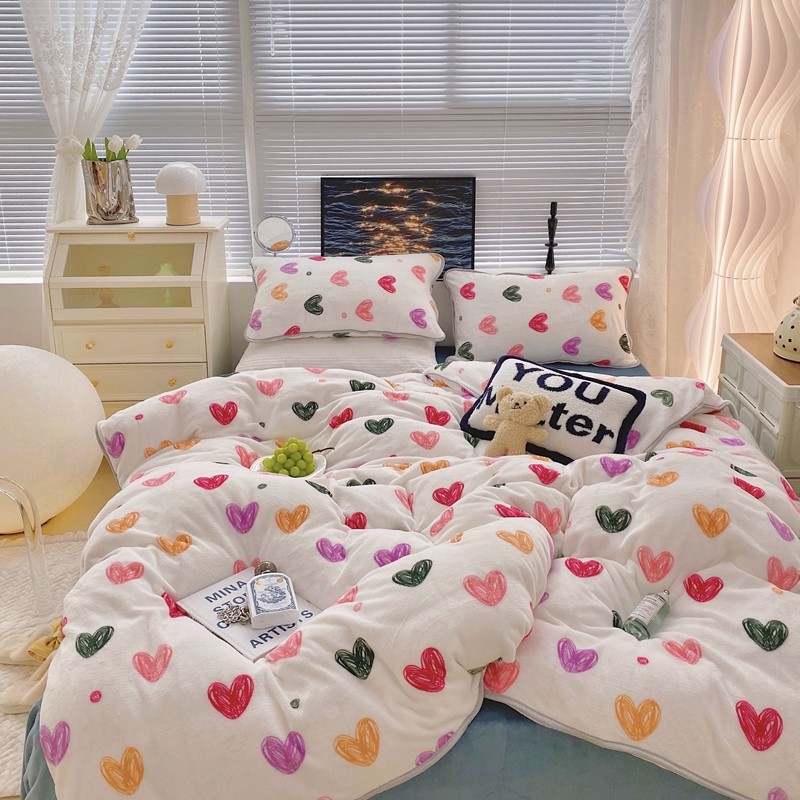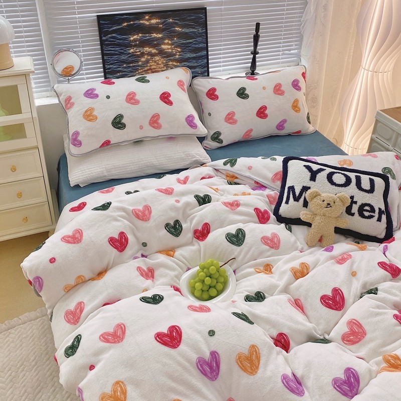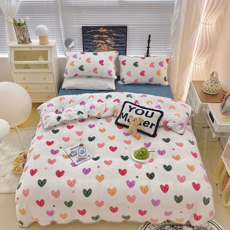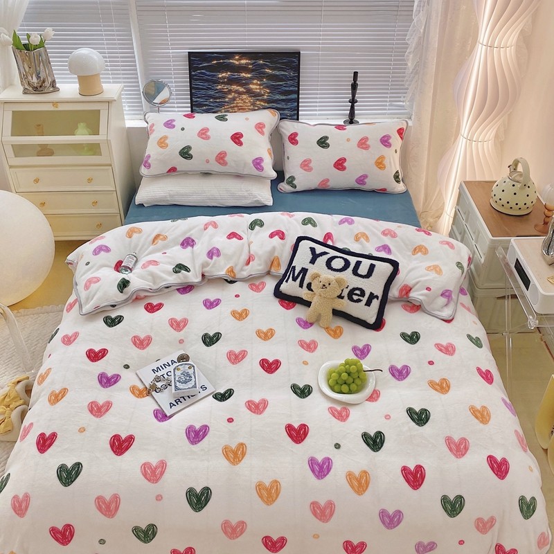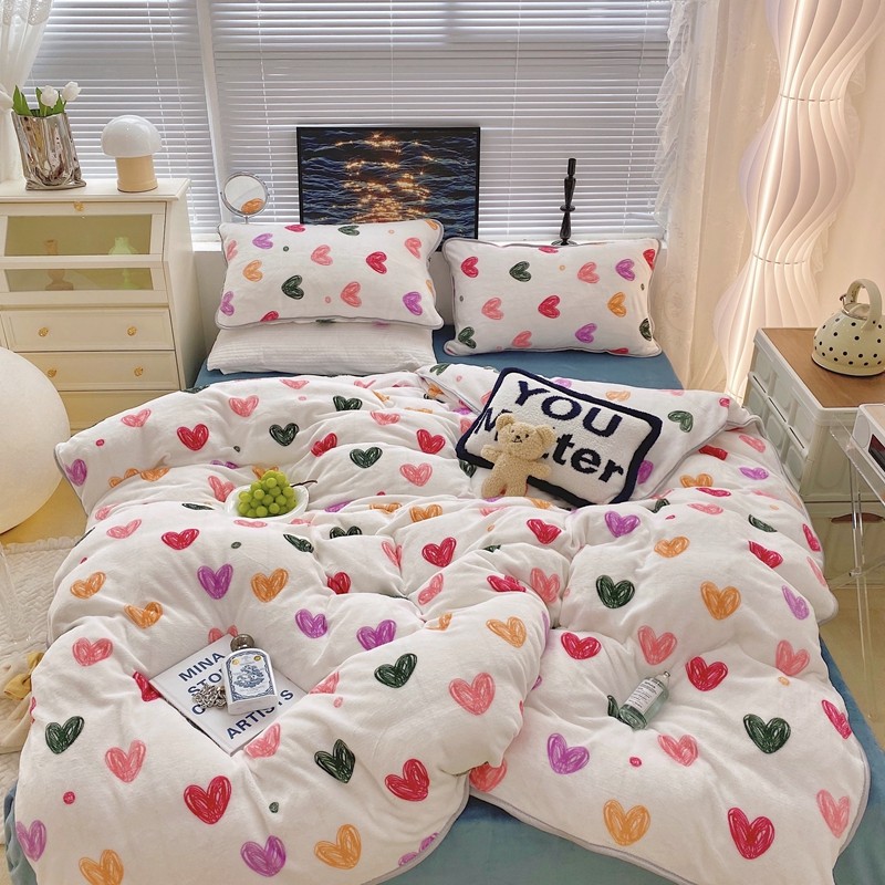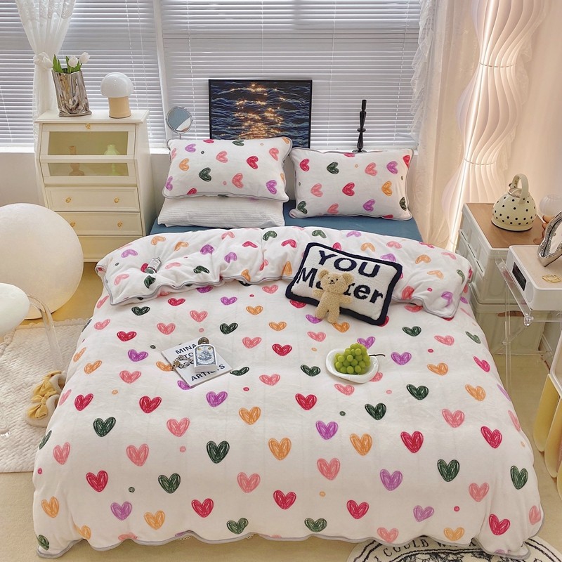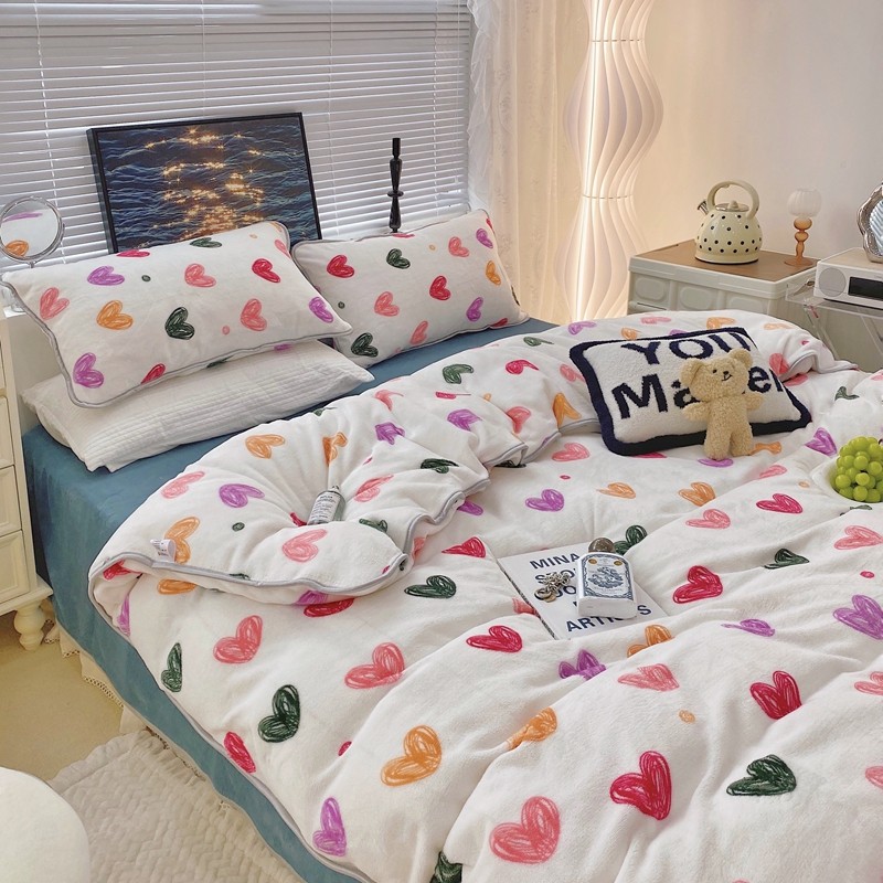 顾里家纺2021新款ins韩国高端保暖牛奶绒四件套少女心