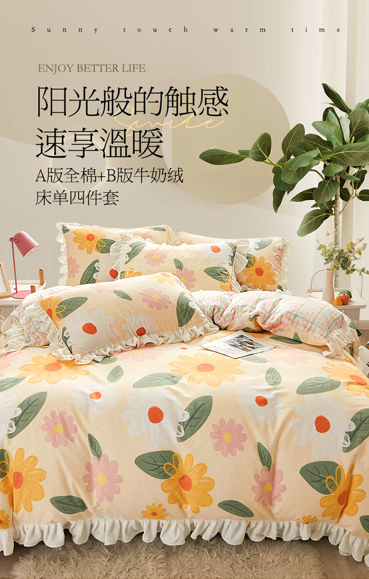 宜凡家纺 2021新款棉加绒印花床单四件套 莫奈