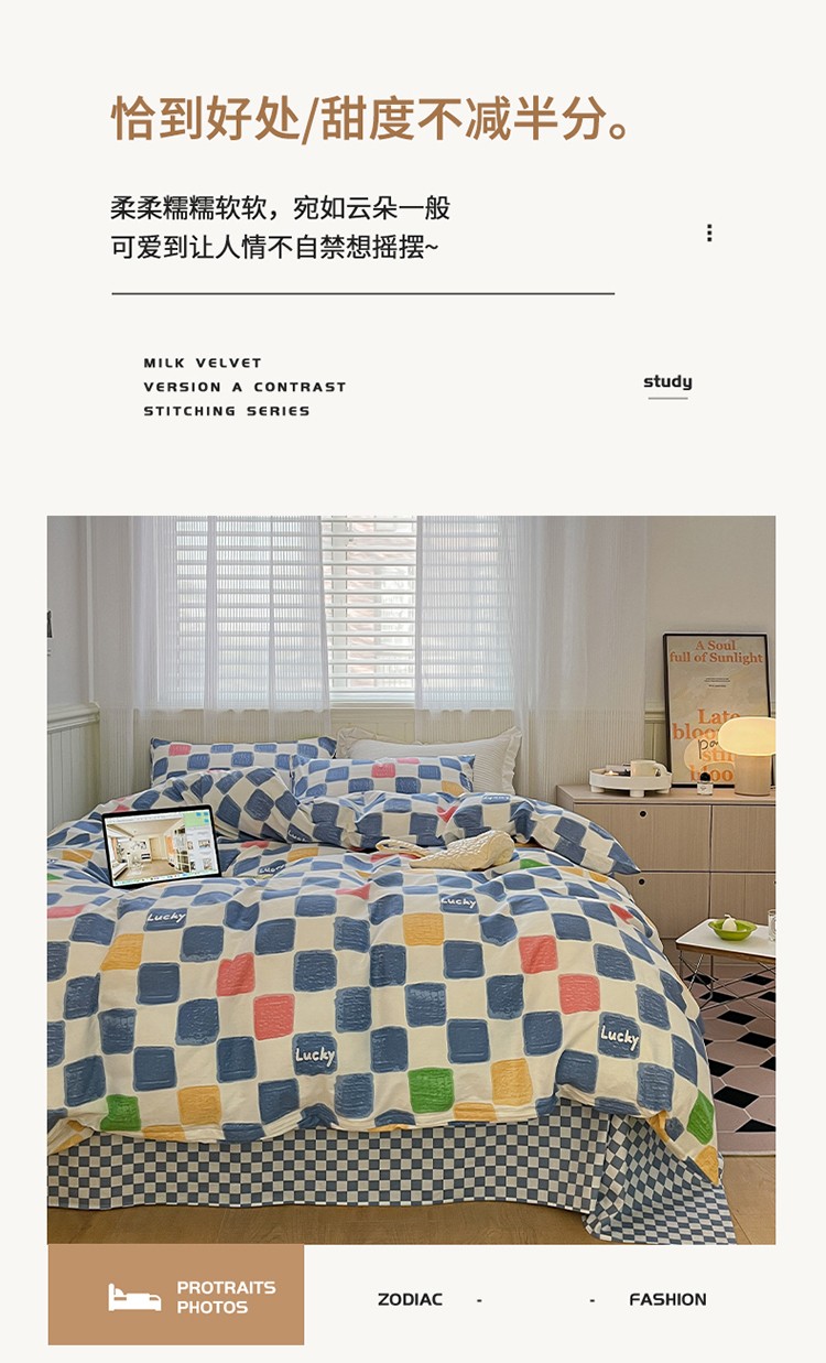 (总)雅居纺家纺 2025新款高克重牛奶绒印花四件套,M粉,爱心恐龙,粉粉桃,粉色竖条,乖乖兔,蝴蝶结-粉,蝴蝶结-蓝,幻境-粉,简约绿条,经典豹纹,咖色竖条,开心龙,蓝墨花朵,蓝色竖条,蓝色小兔,蓝条猫咪,浪漫花香,秘境小兔,时尚爱心,树叶小兔子,竖条小花,四宫格,仙草,小煤球,幸运兔,休闲小兔,宇航熊