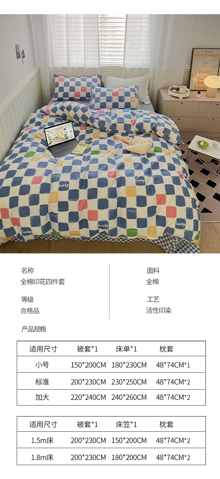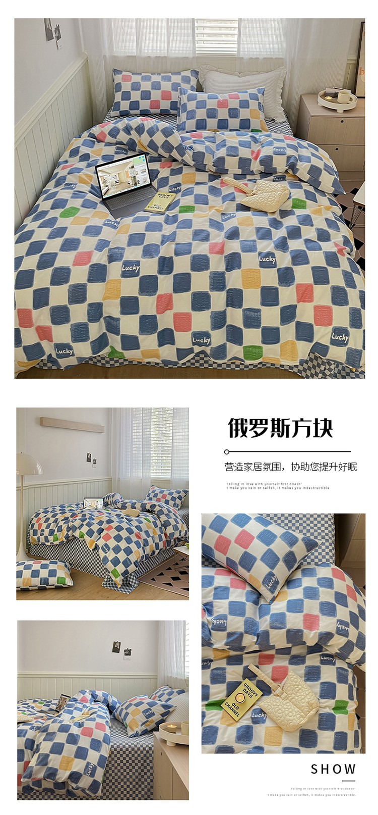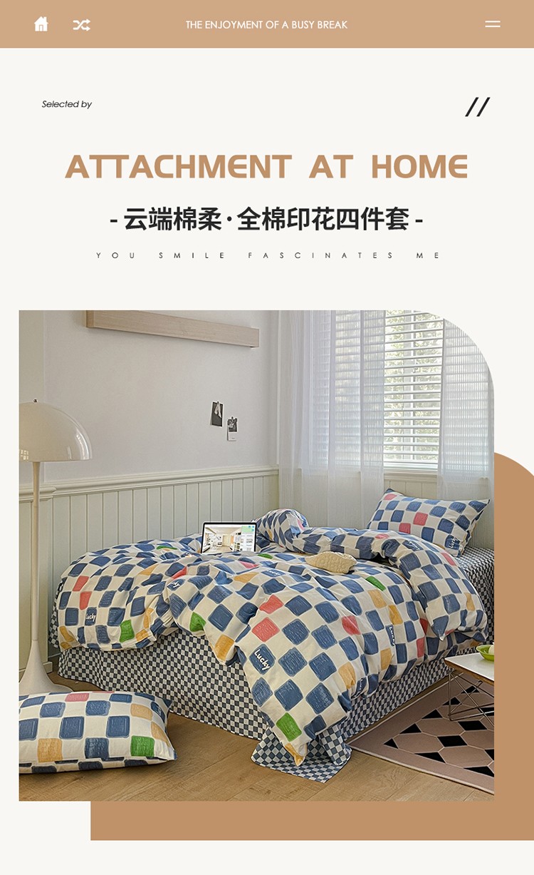 商品名称:雅居纺家纺 2022新款13070全棉印花四件套 俄罗斯方块