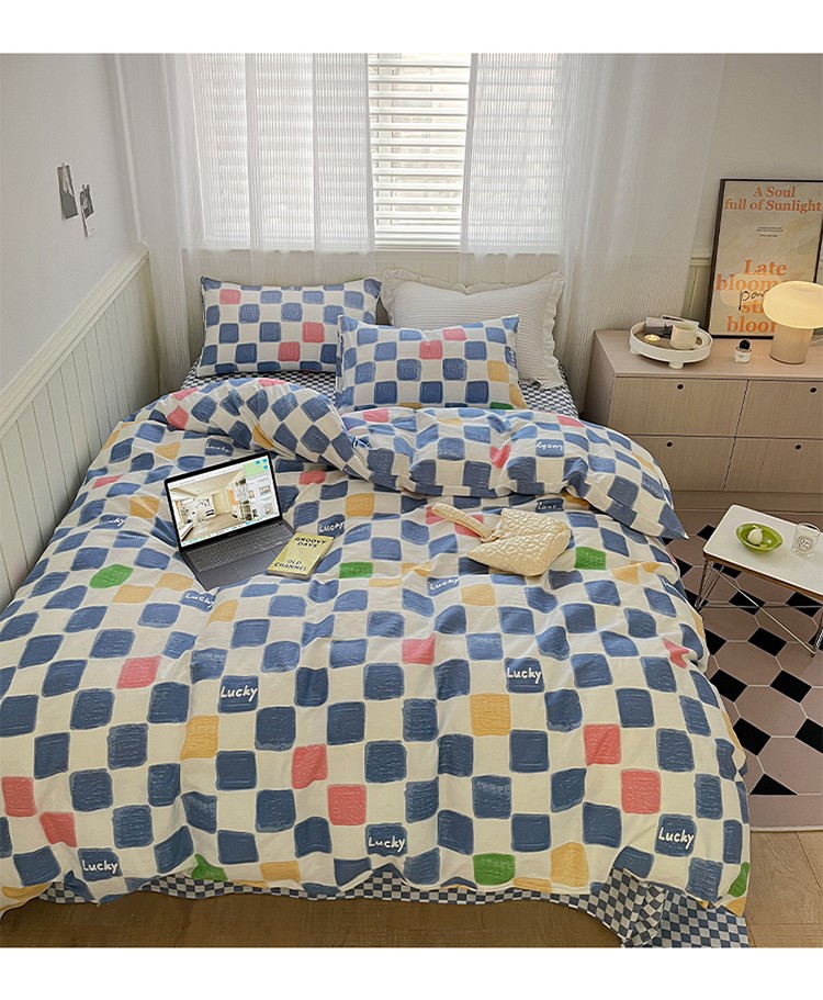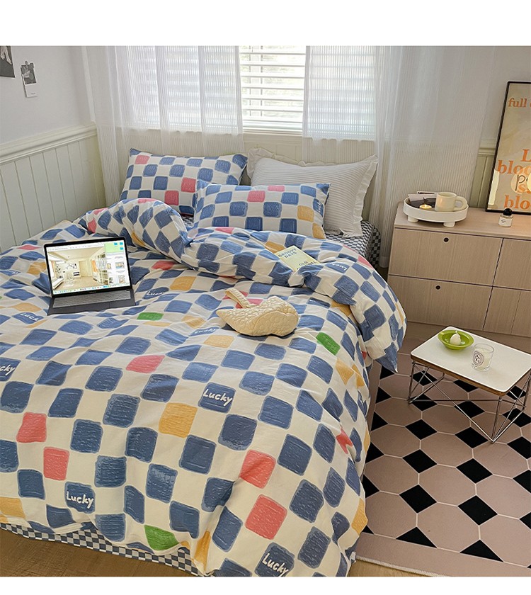 雅居纺家纺 2022新款13070全棉印花四件套 俄罗斯方块