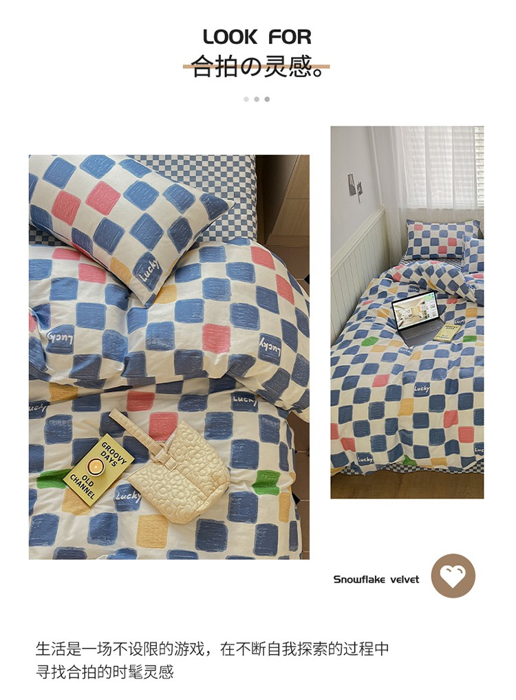 (总)雅居纺家纺 2025新款简约兔绒球球保暖舒适四件套-波点,波点-白咖,波点-粉黄,波点-咖,波点-蓝黄