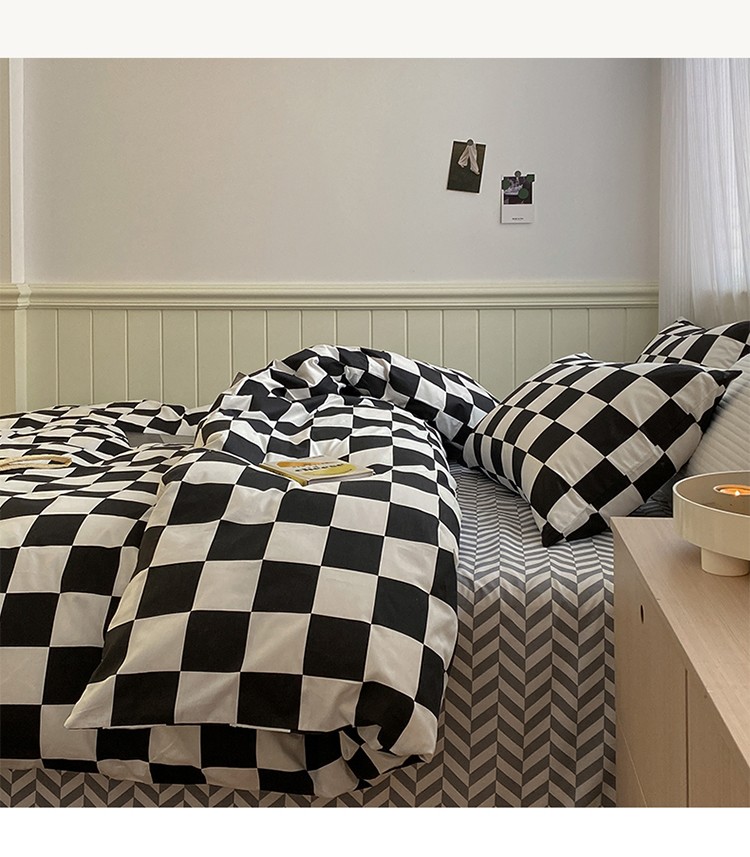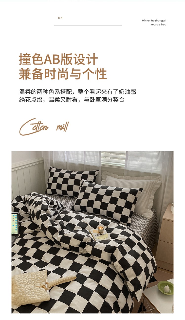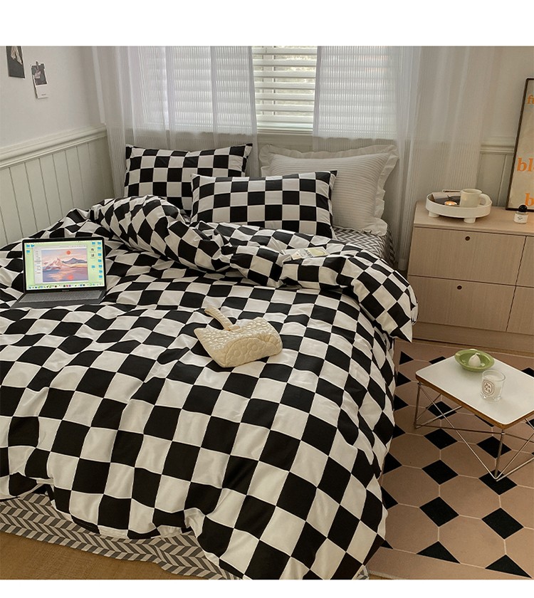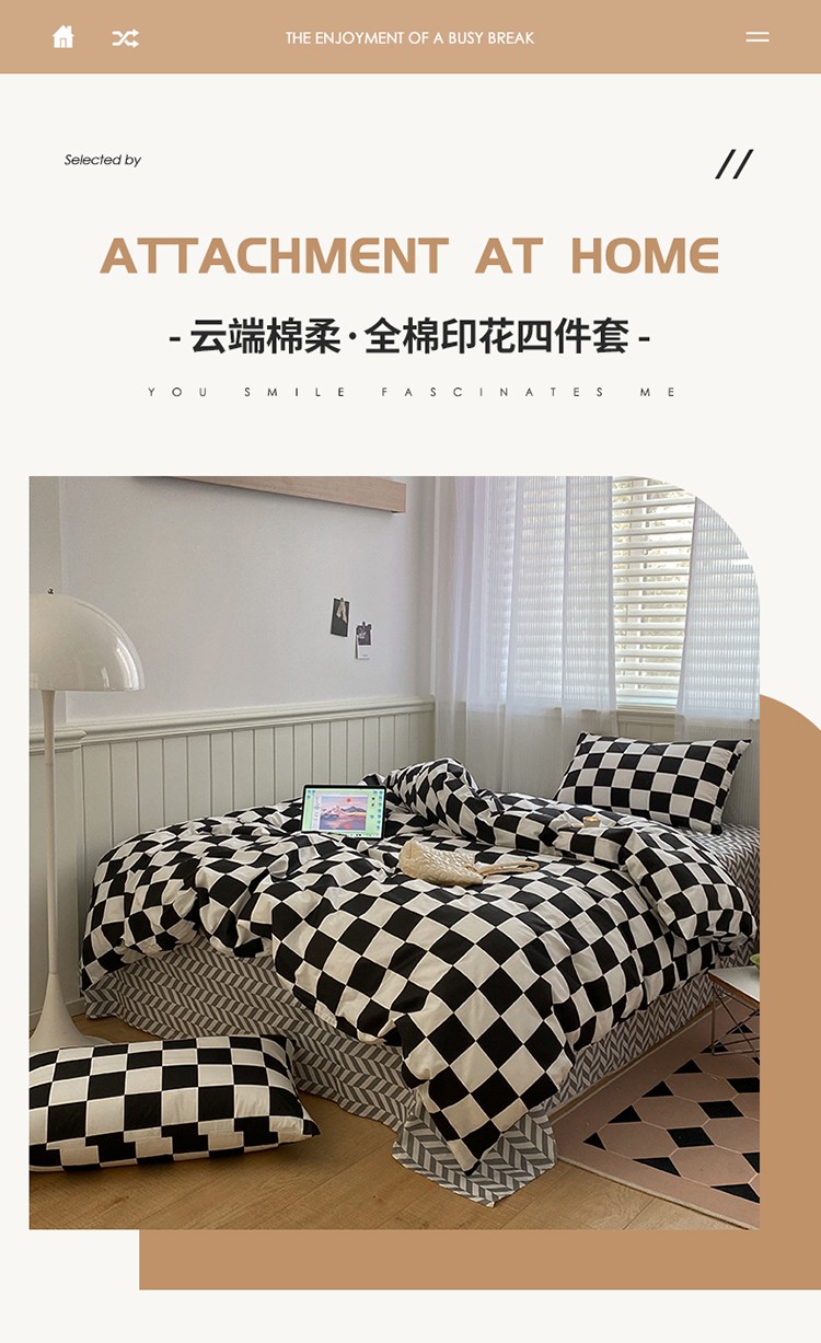 雅居纺家纺 2022新款13070全棉印花四件套 棋盘格