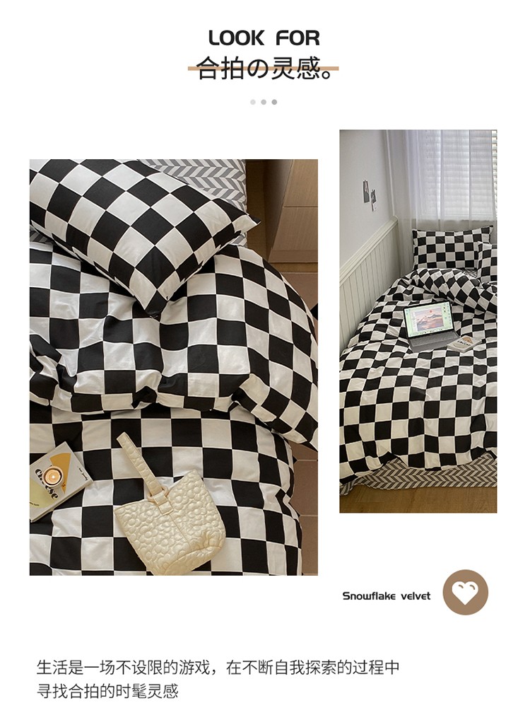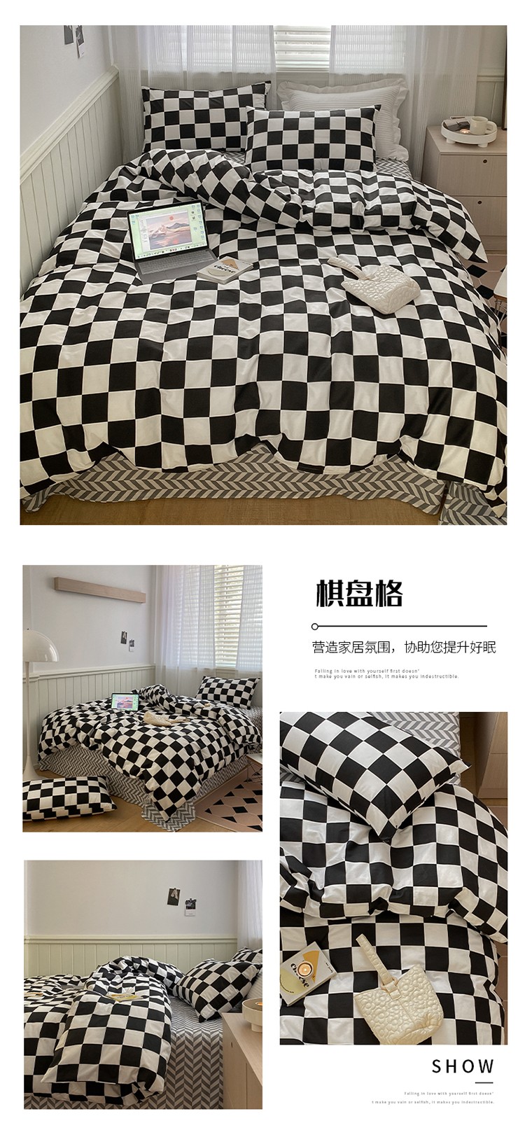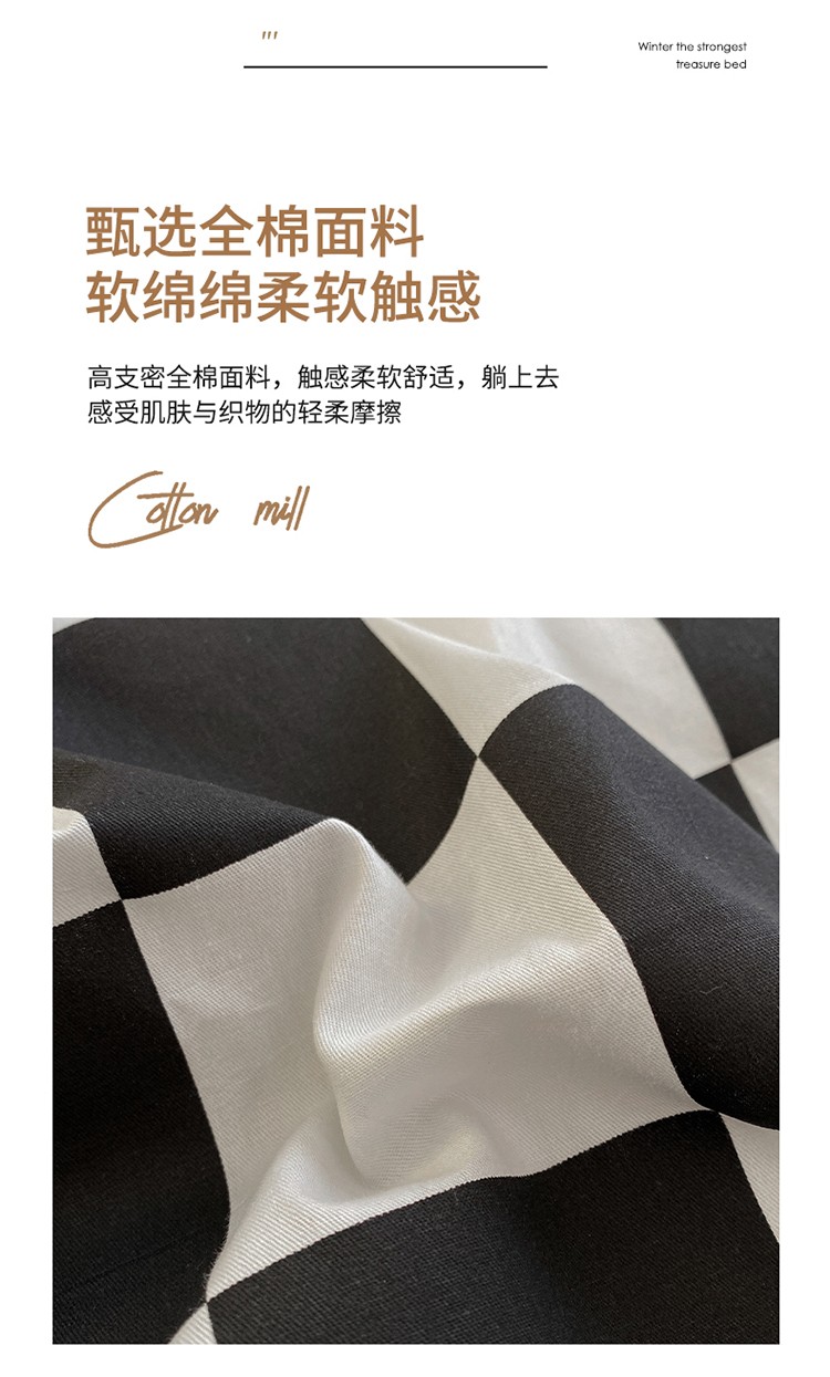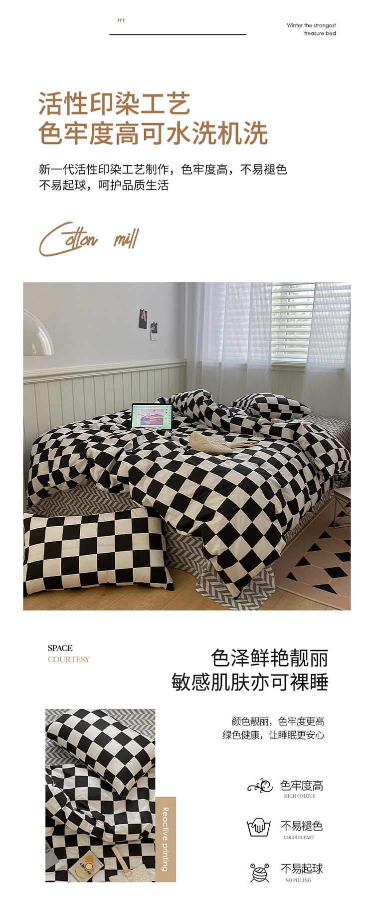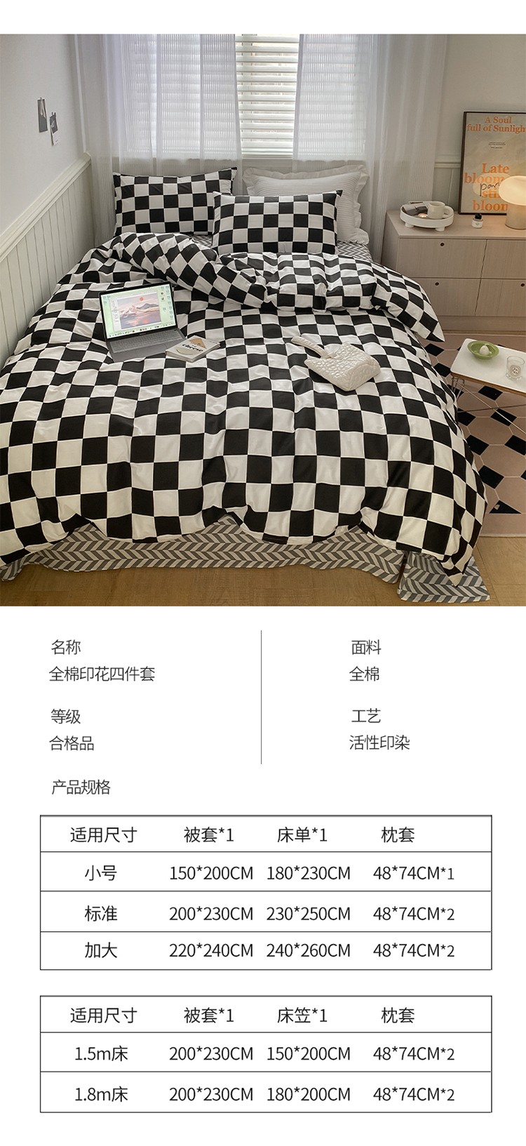 商品名称:雅居纺家纺 2022新款13070全棉印花四件套 棋盘格