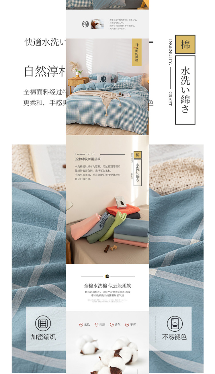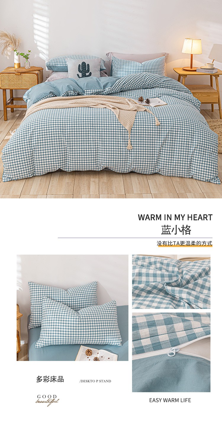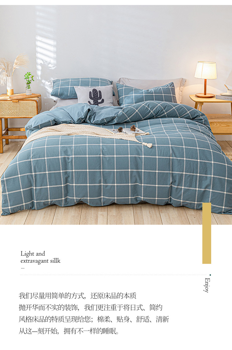 当前位置: 91家纺网 > 商品网购 > 床品套件 > 四件套 > 全棉普通四件套 > 蓝巢 2021新款全棉色织水洗棉四件套 蓝小格