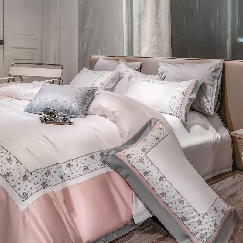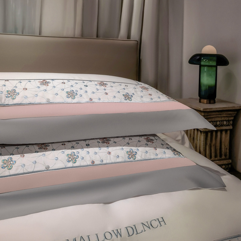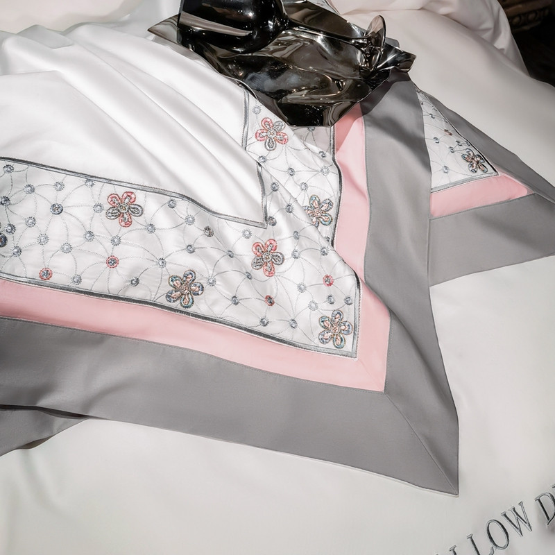 缔缦家纺 2022新款100s澳棉刺绣系列四件套-花钻 柔白