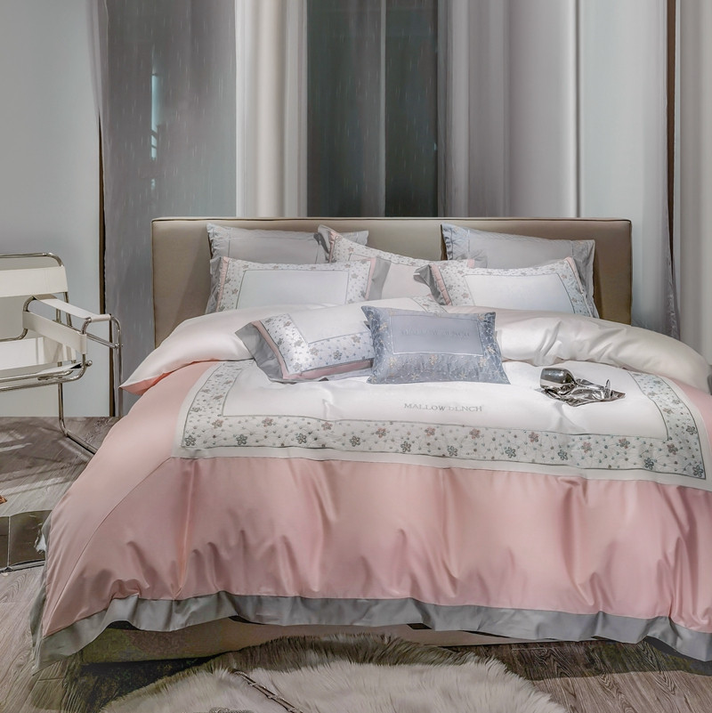 (总)缔缦 2024新款80s超细旦天丝棉陶瓷轻磨毛系列四件套-朵美,丁香紫,豆沙,灰蓝色,暖灰,天青色,绾驼色,香槟