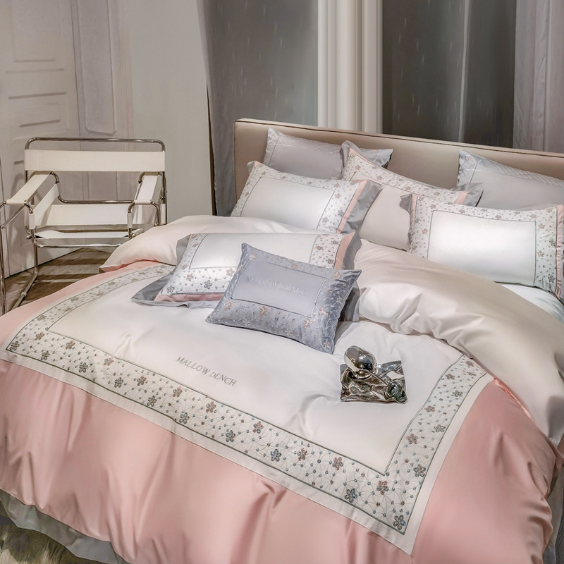 (总)缔缦 2024新款定织新布种S140系列刺绣拼角工艺四件套-威廉皇室,威廉皇室 贵族白,威廉皇室 酒红,威廉皇室 深灰