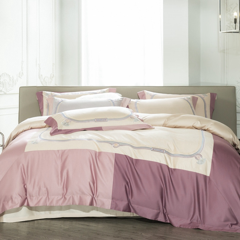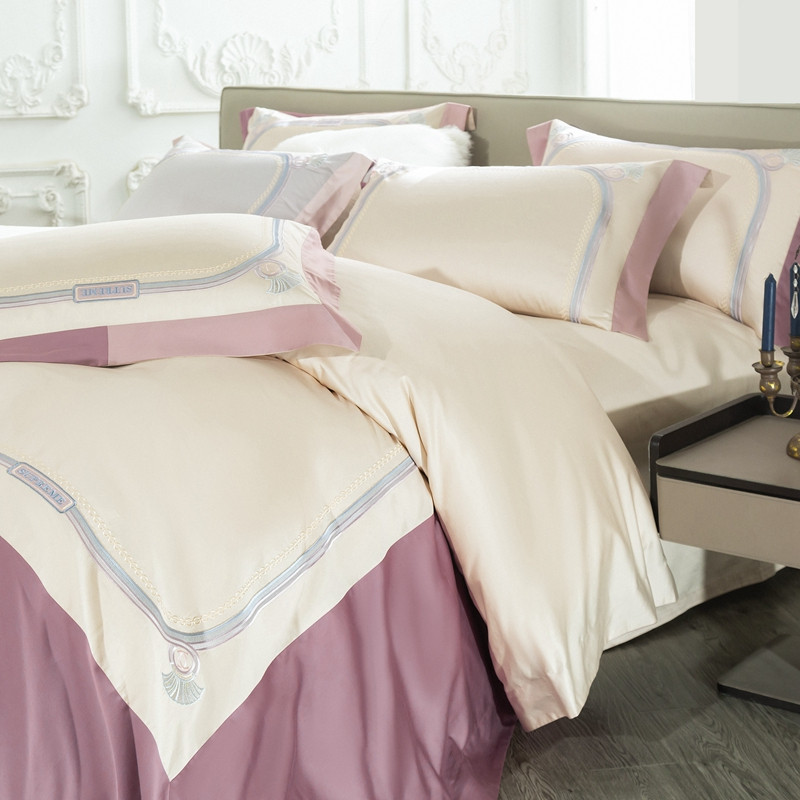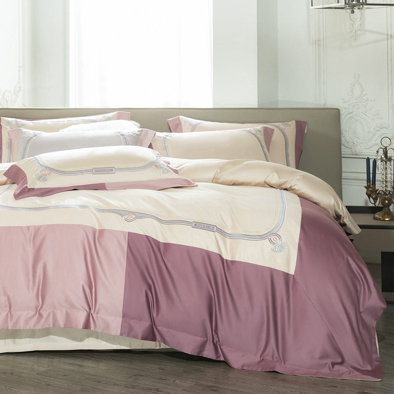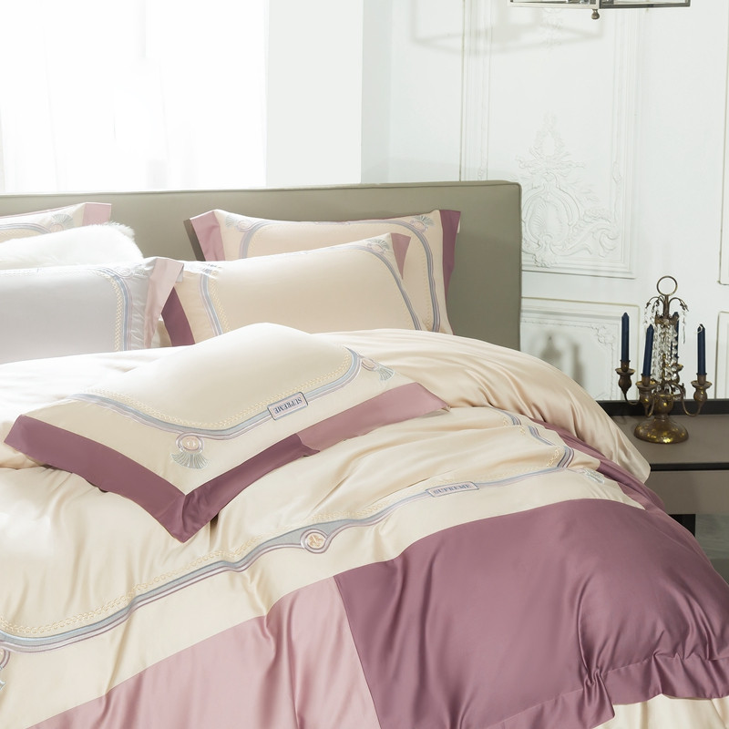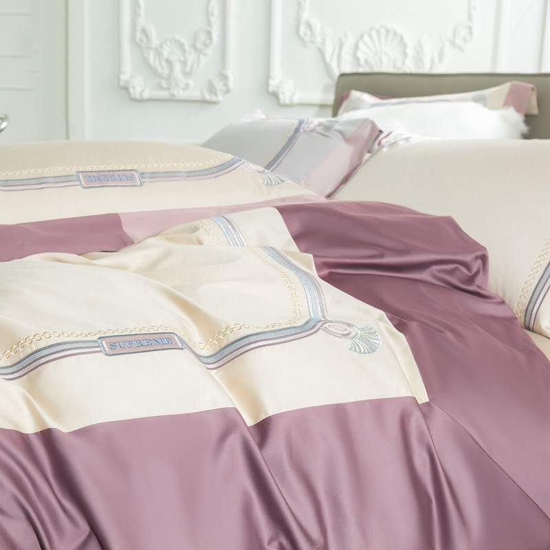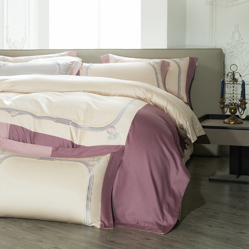 缔缦家纺 2022新款100s澳棉刺绣系列四件套-拉斐尔 燕麦紫