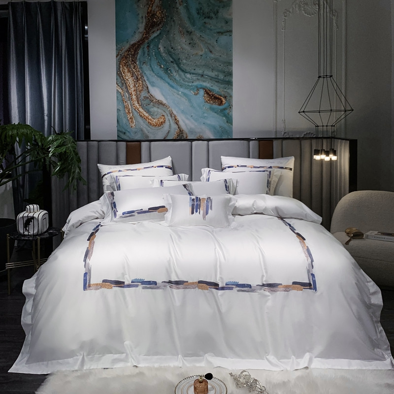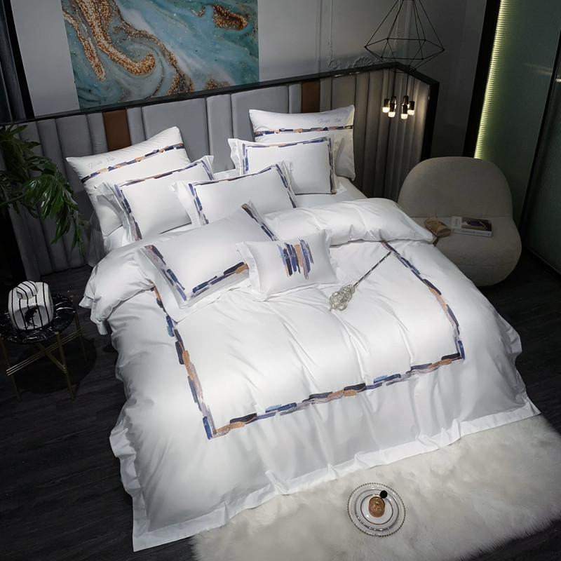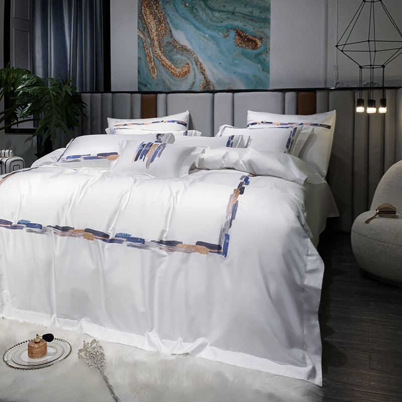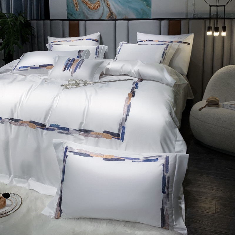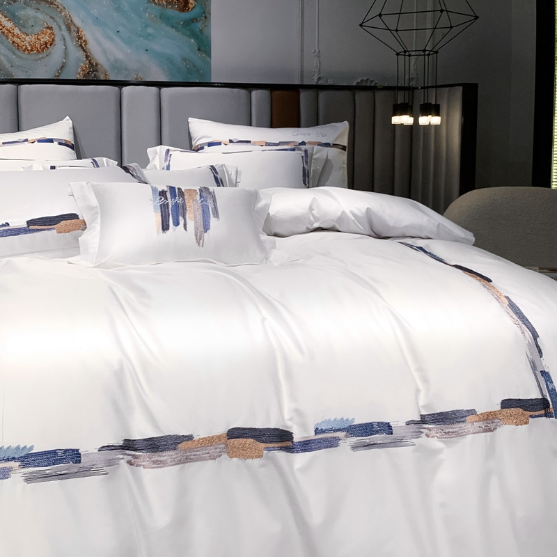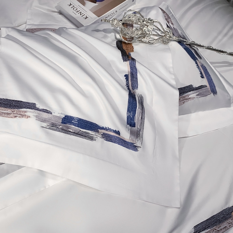 缔缦家纺 2022新款100s澳棉刺绣系列四件套-晴岚 柔白