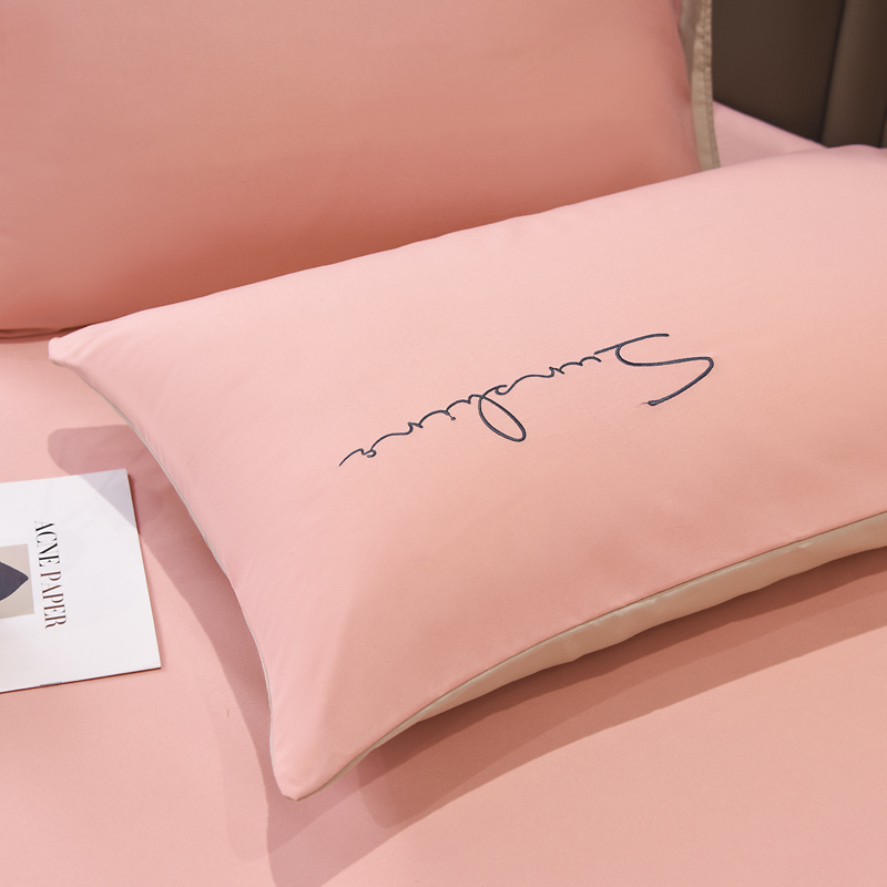 七仙女 新款亲肤磨毛绣花款枕套直播供货 奶油粉+奶茶/只