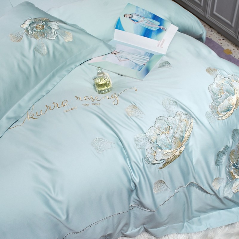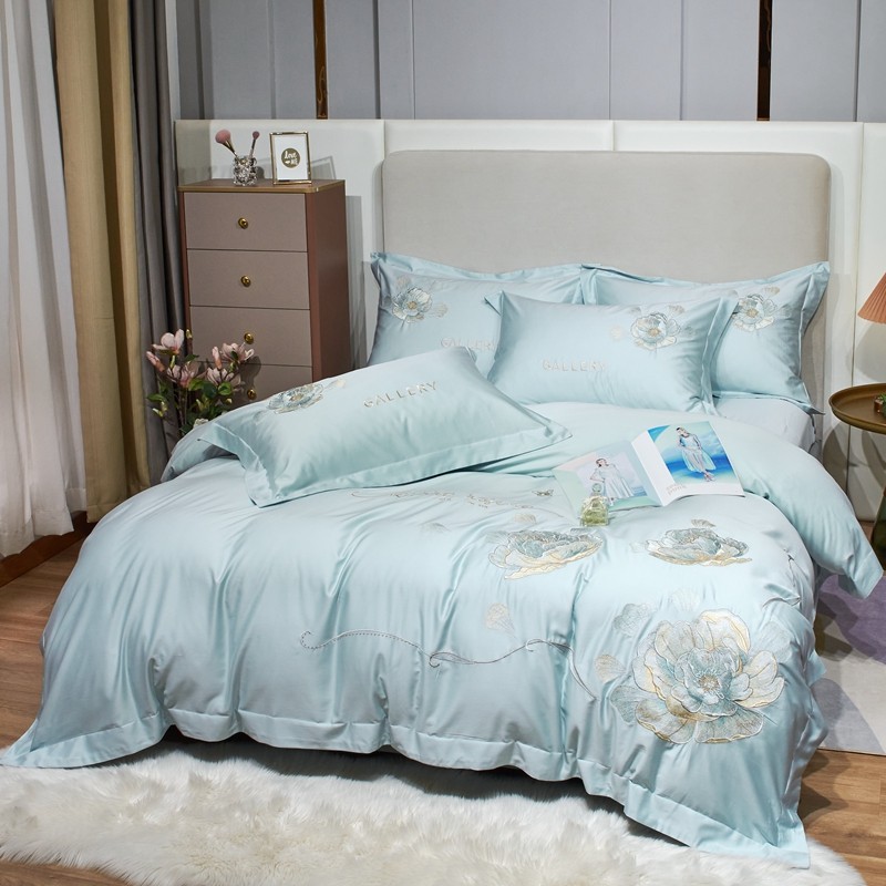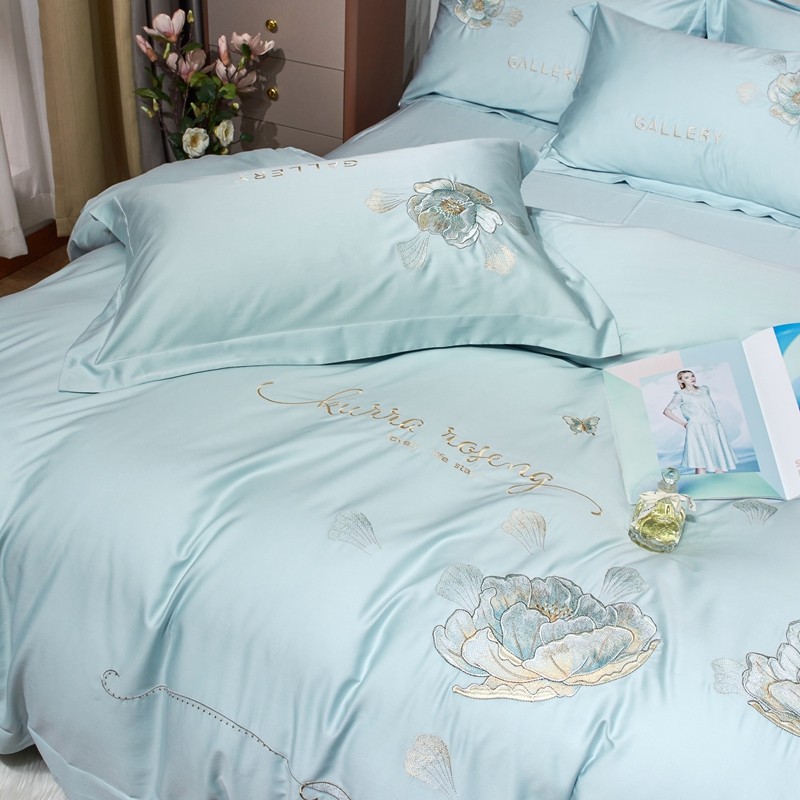 星尚 2022新款100支长绒棉四件套-花开富贵 浅蓝