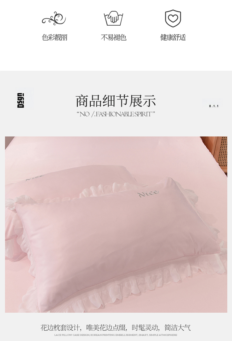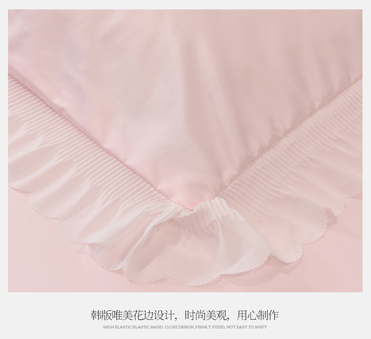 艾米家居 2025新款韩版双层花边轻奢浮雕系列水洗冰丝四件套 粉花边,粉花边