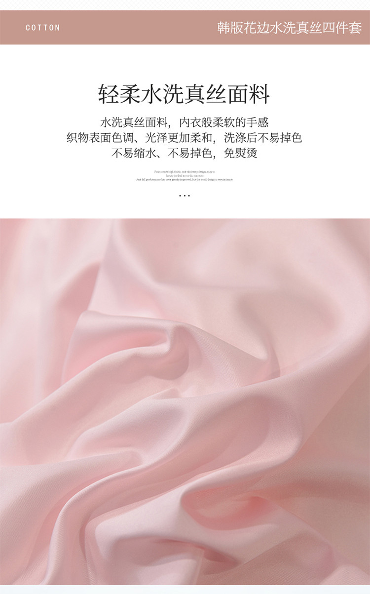 (总)艾米家居 2026春夏水洗真丝花边款四件套-春漾系列,珍珠白,公主粉,青苹绿,水波蓝,浅藕色