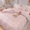 (总)艾米家居 2025秋冬新款牛奶绒泡泡印花花边四件套,豆沙条纹粉,蝴蝶花,太阳花