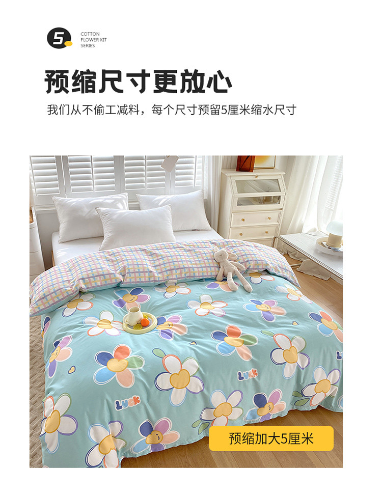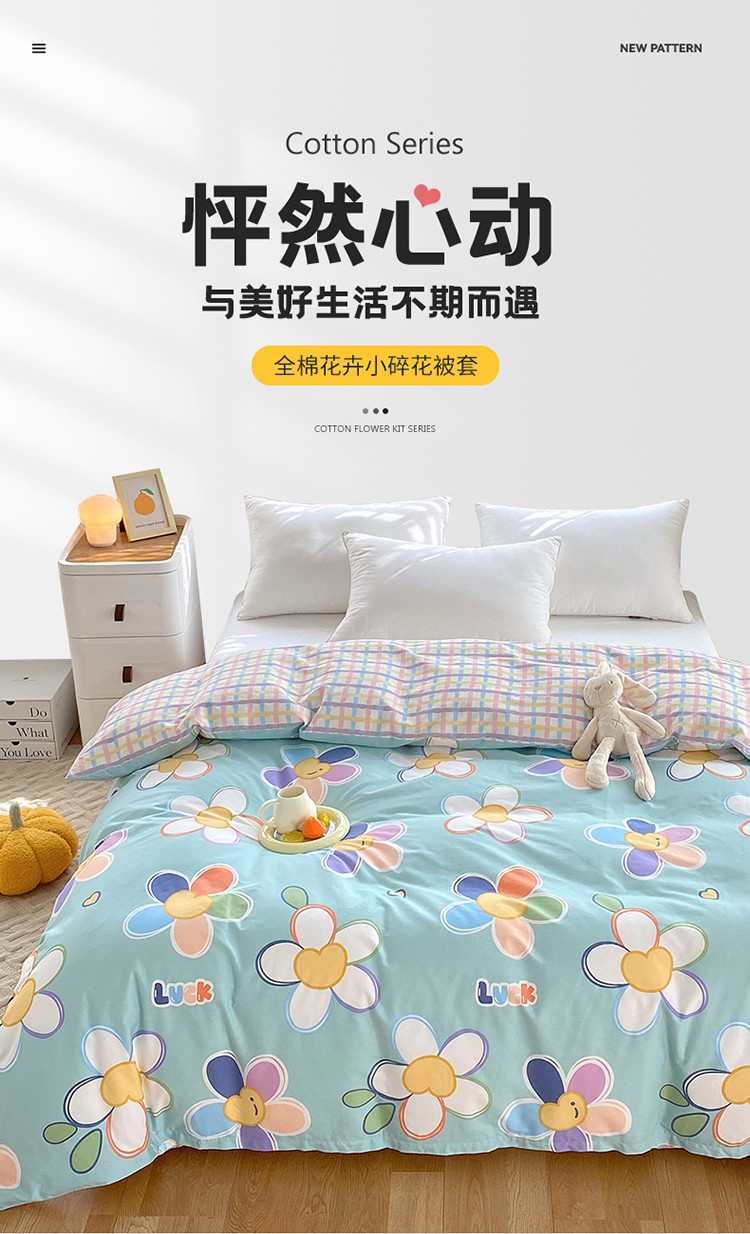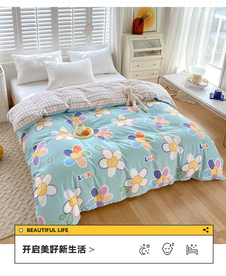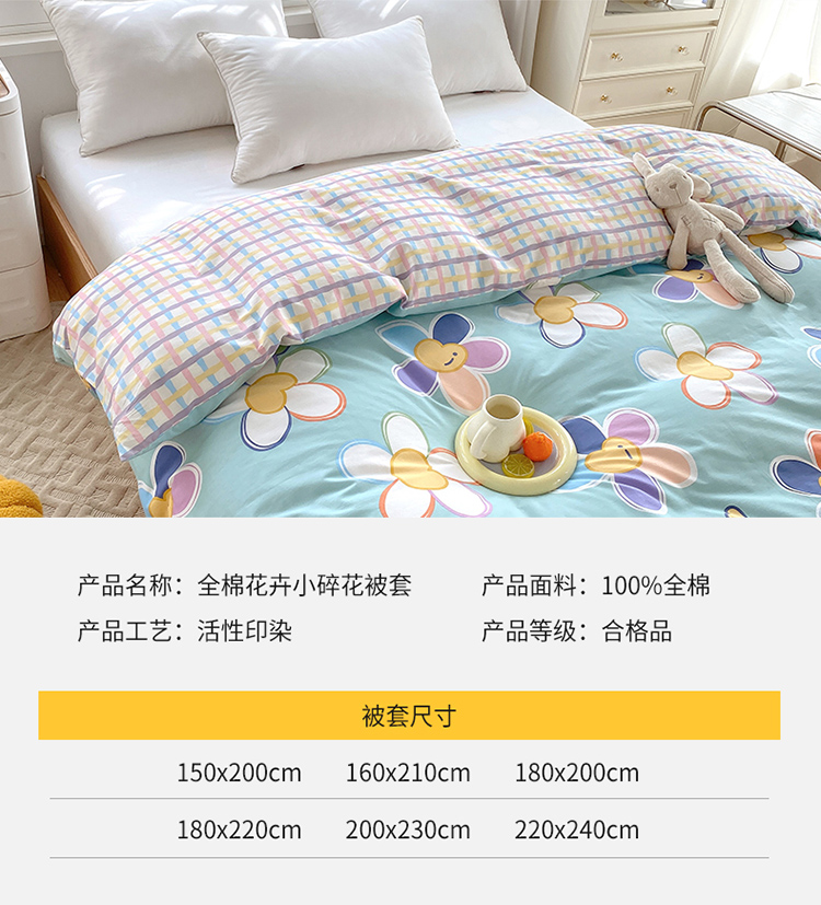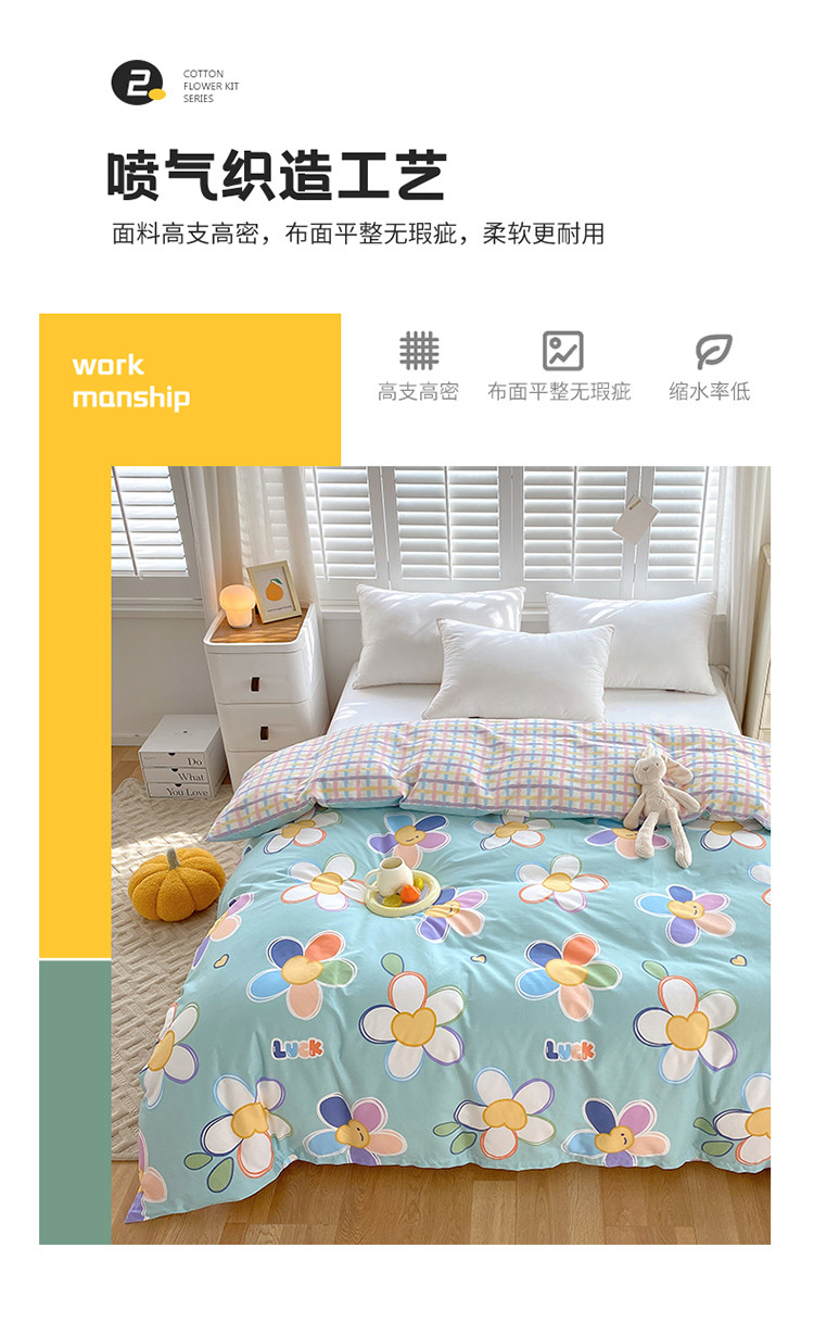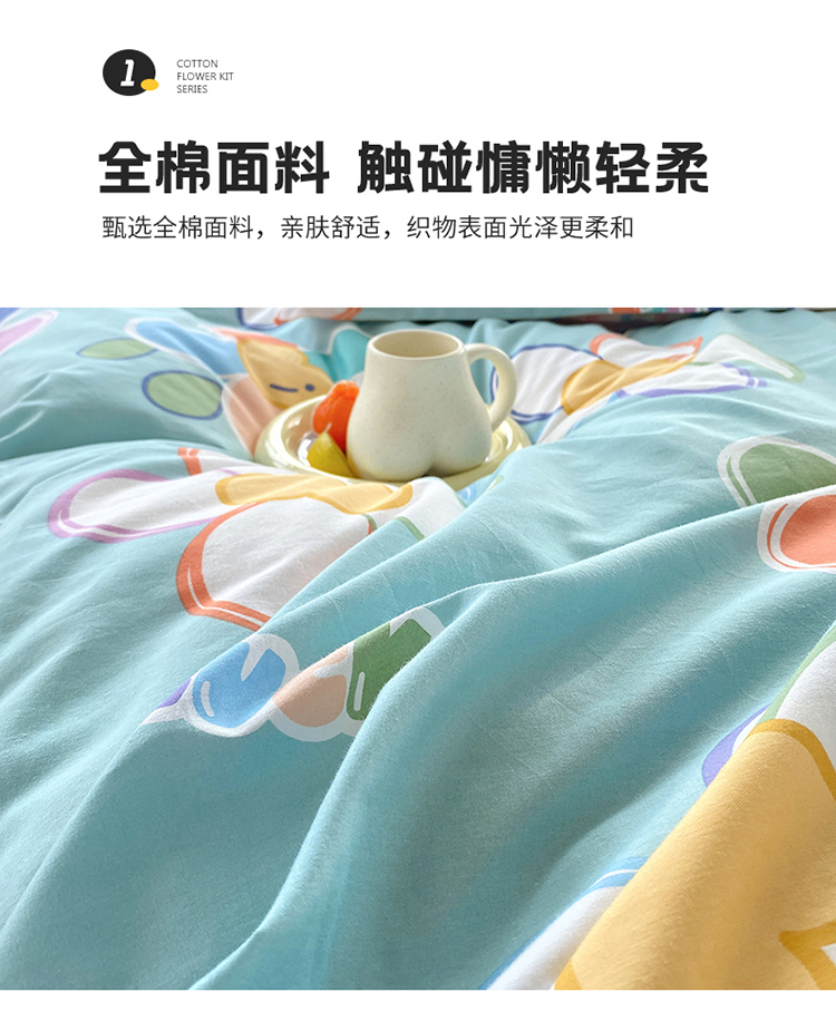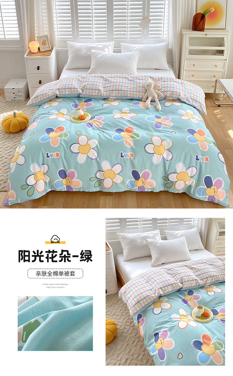 商品名称:拾物记 2022新款A类12868全棉喷气印花系列单被套 阳光花朵-绿