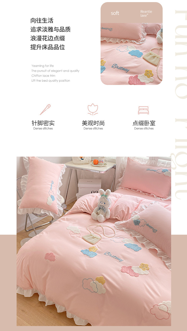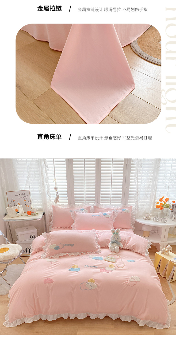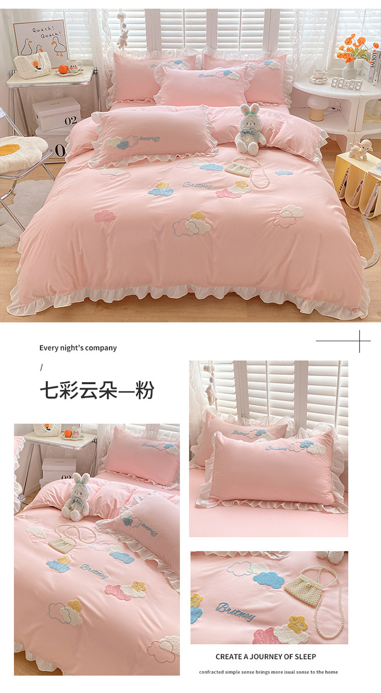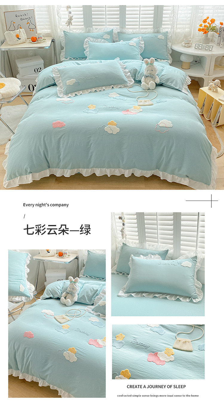 (总)易禾家纺 2022新款小清新水洗亲肤棉四件套七彩云朵
