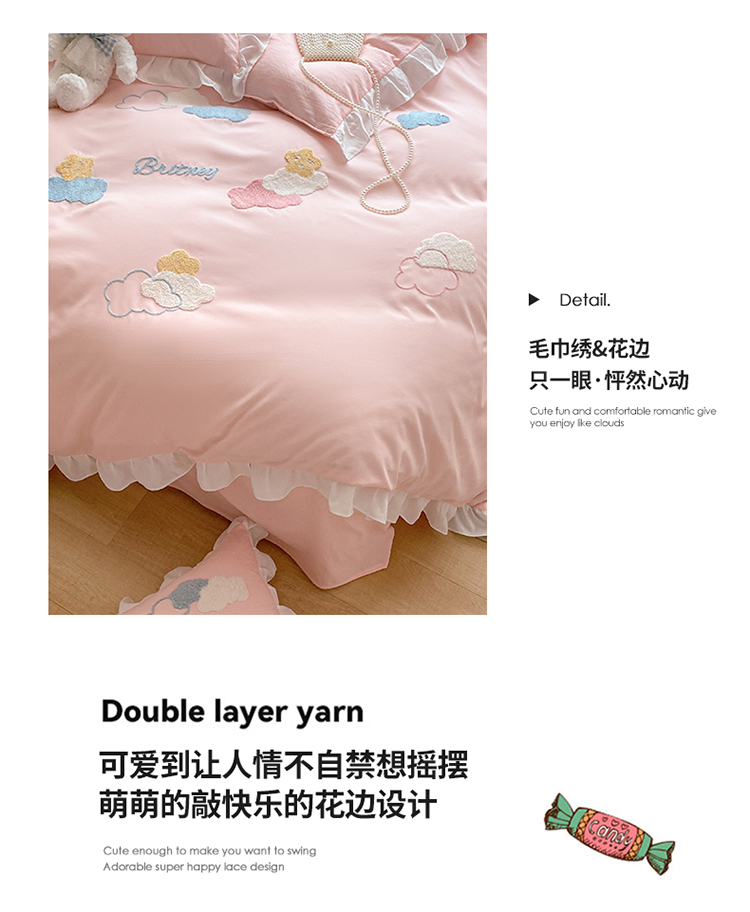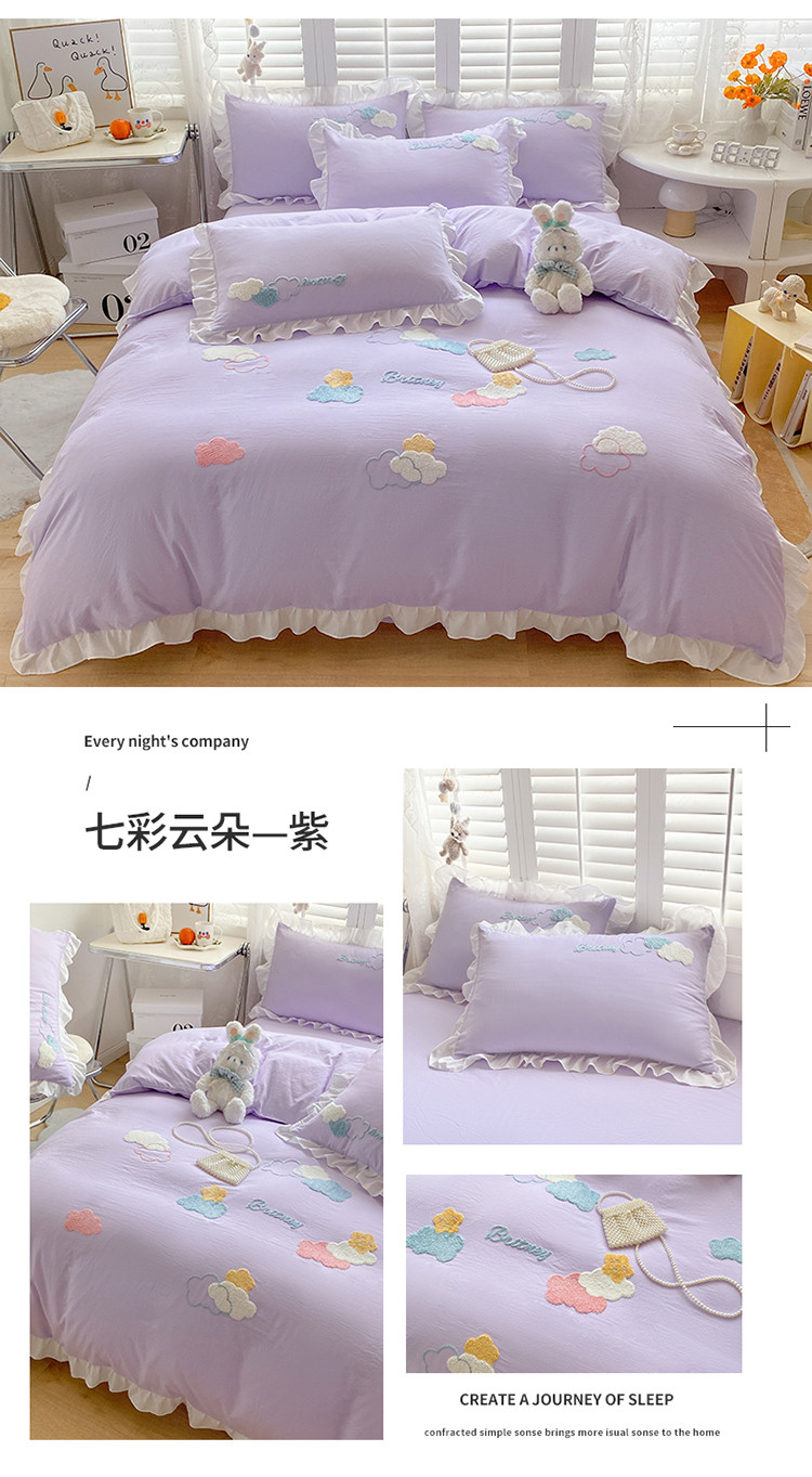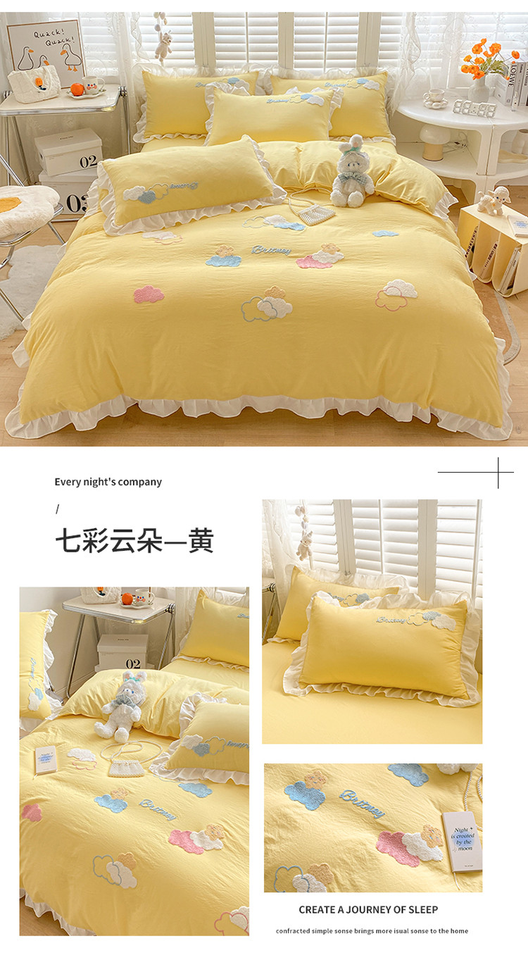 (总)易禾家纺 2022新款小清新水洗亲肤棉四件套七彩云朵,七彩云朵粉,七彩云朵白粉,七彩云朵黄,七彩云朵蓝,七彩云朵白兰,七彩云朵绿,七彩云朵紫