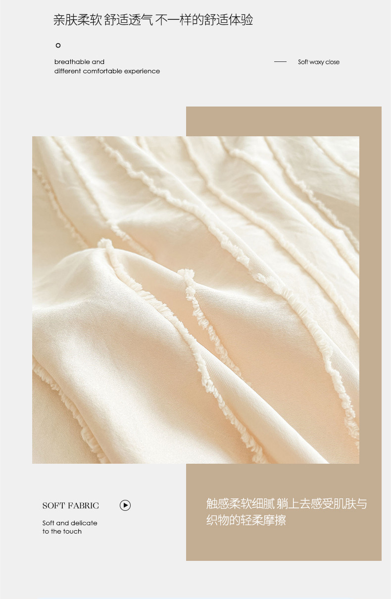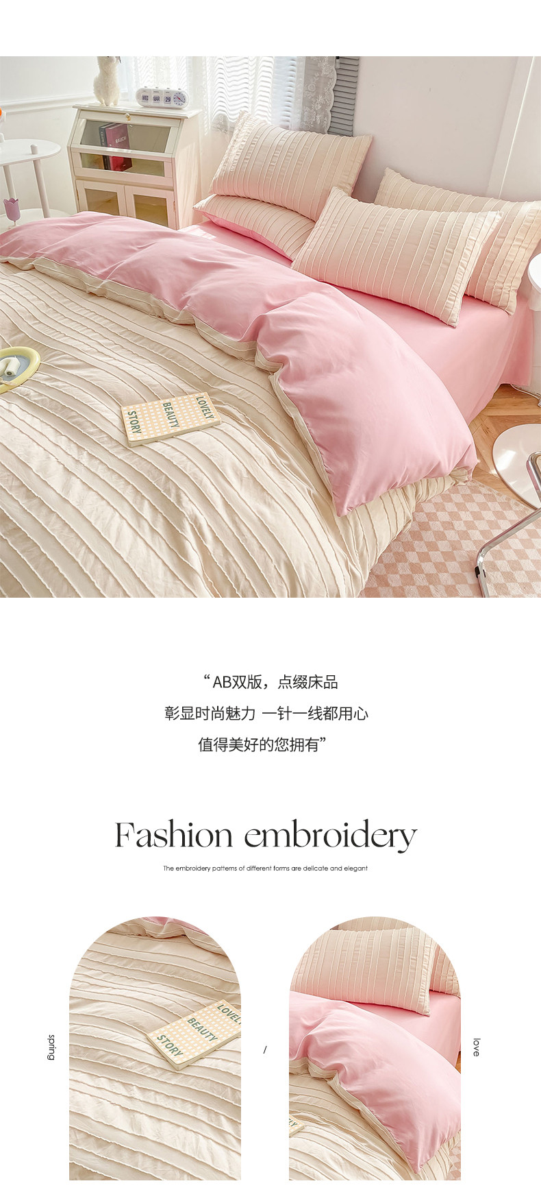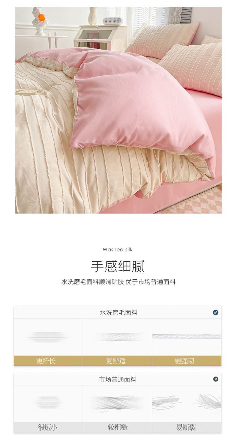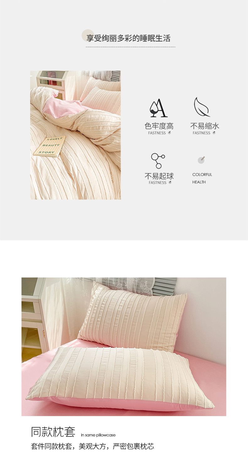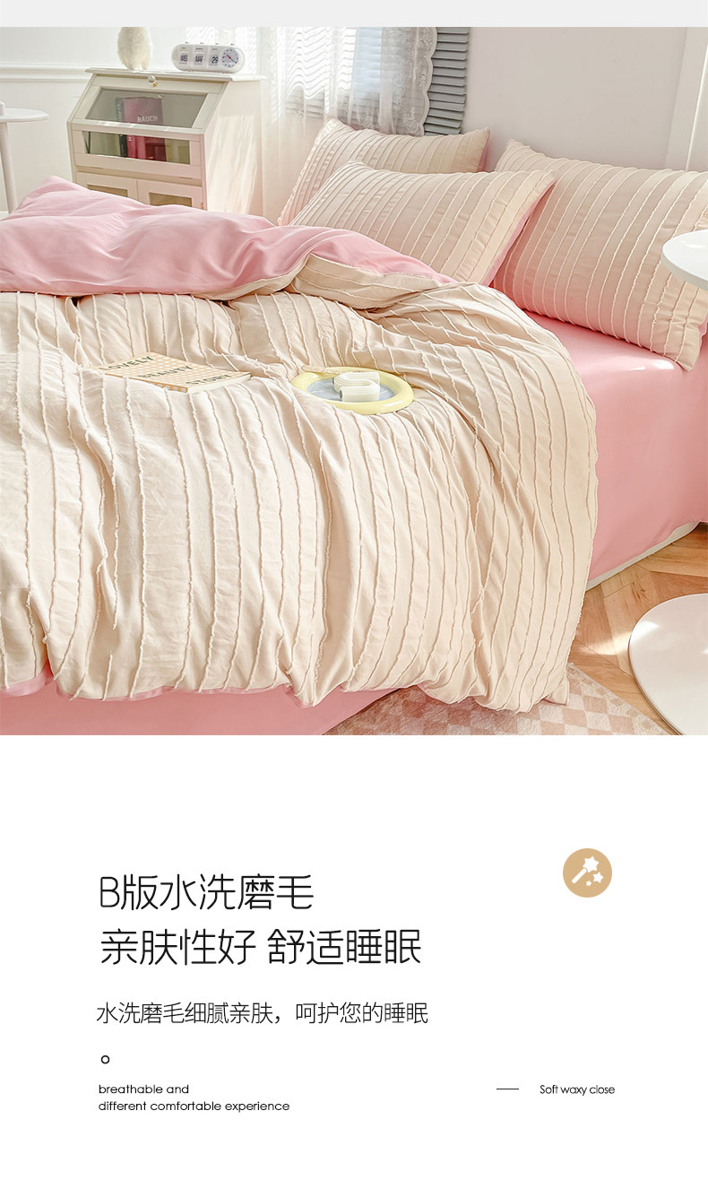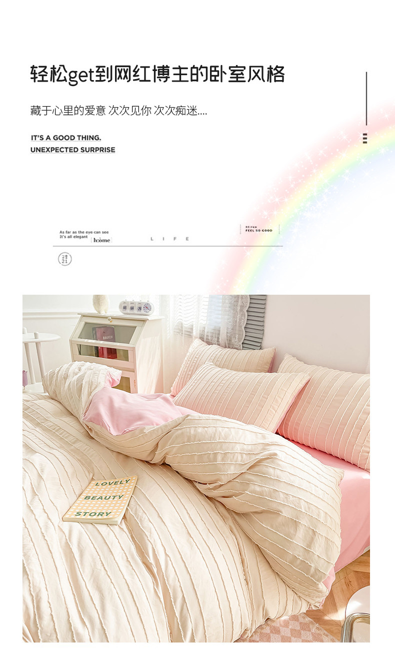 商品名称:古吉梦 2022新款剪花简约条系列四件套简约条-卡其+藕粉
