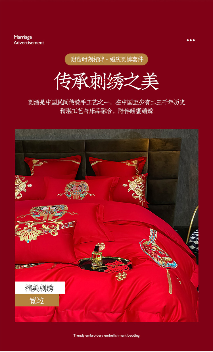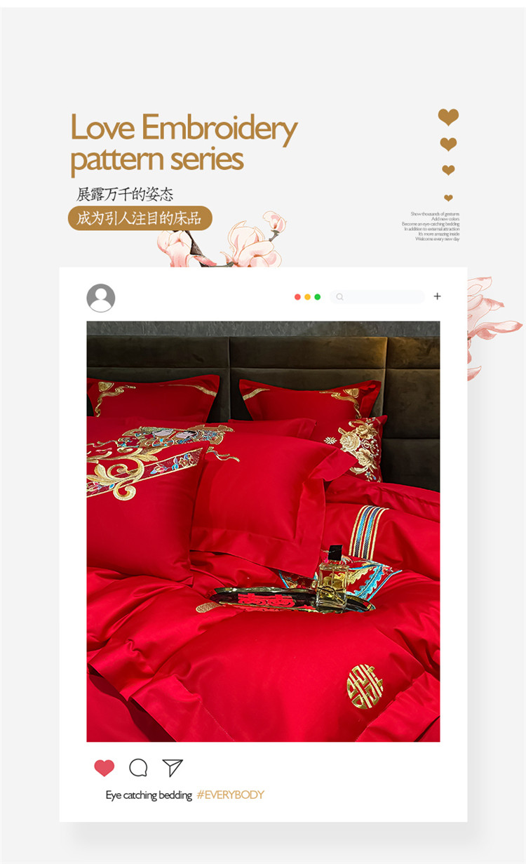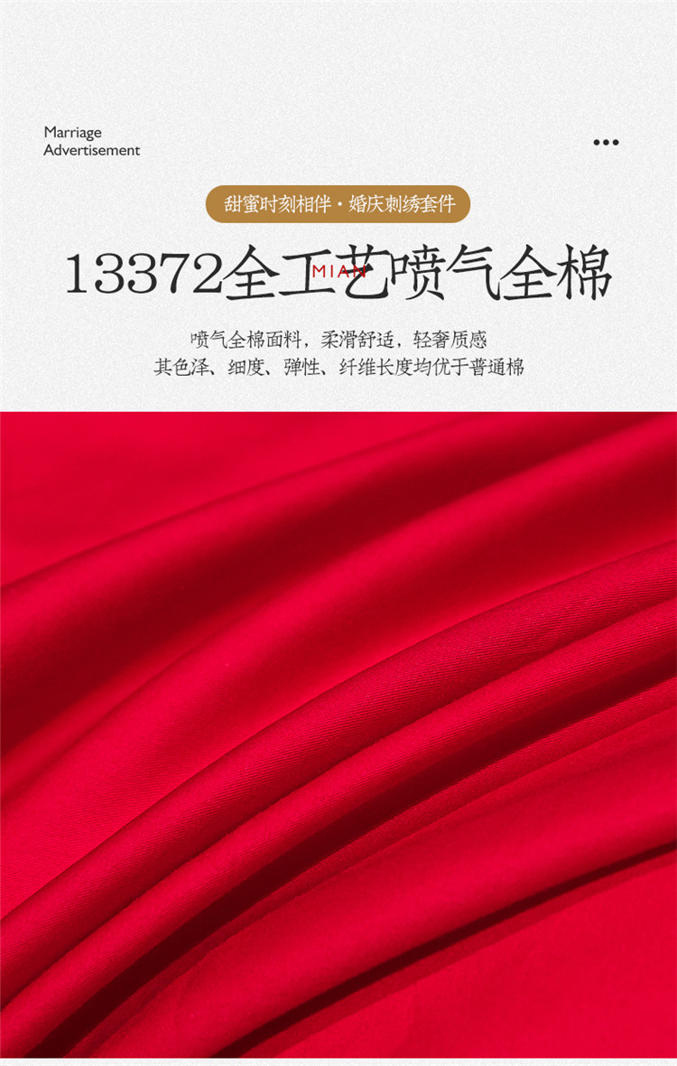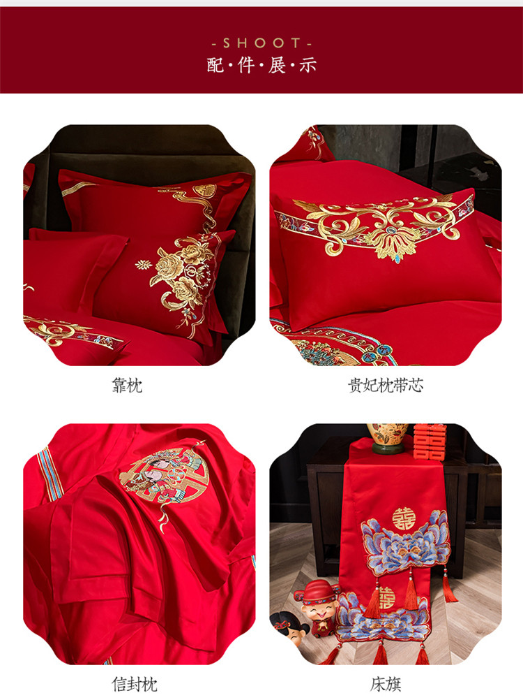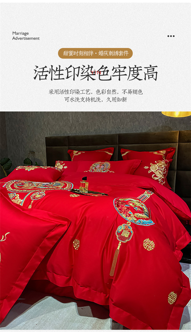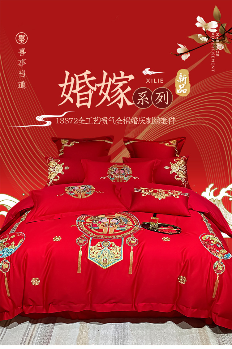 当前位置: 91家纺网 > 商品网购 > 床品套件 > 四件套 > 婚庆四件套 > 千禧 2022新款全工艺喷气全棉婚庆套件 情投意合