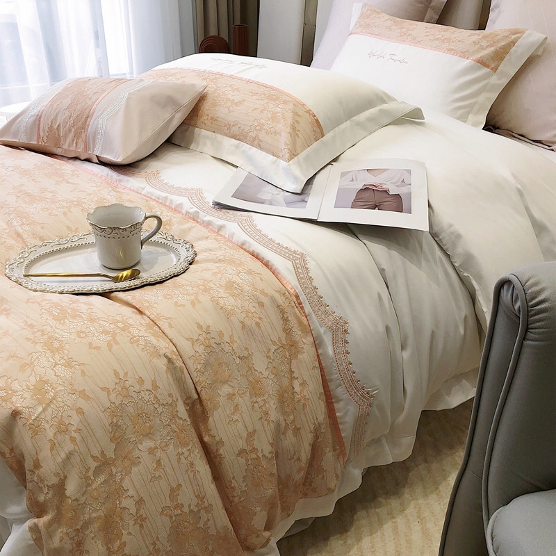 商品名称:初拾 新款100支澳棉+进口蕾丝爱莎系列四件套-实拍图 爱莎-月光白