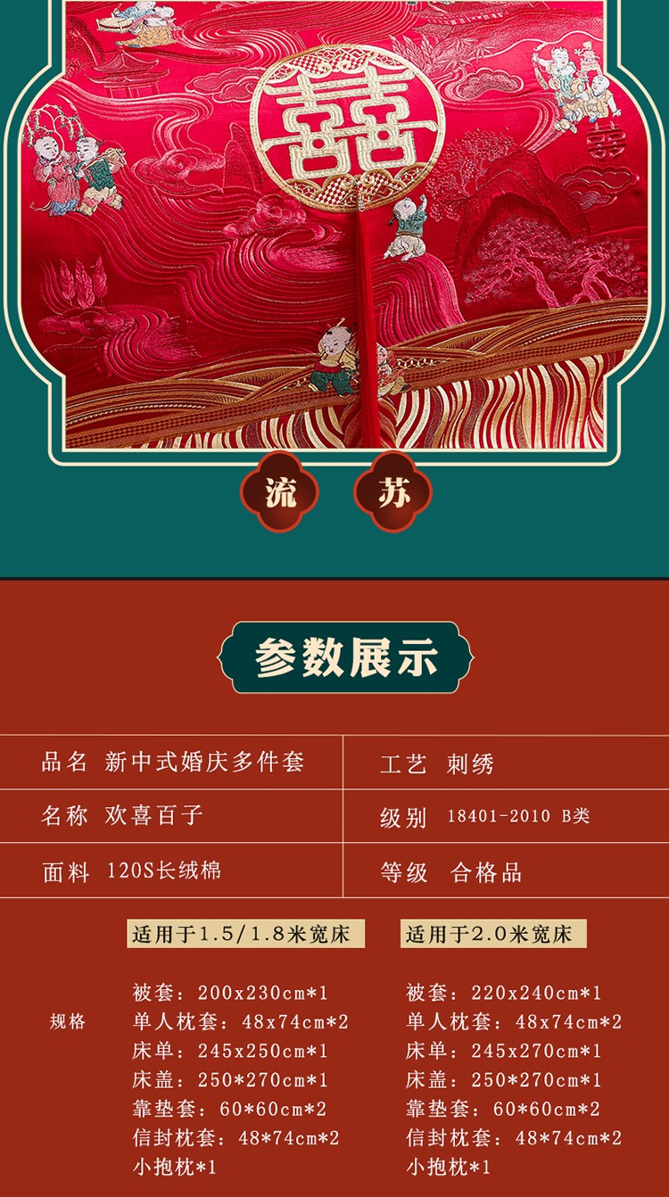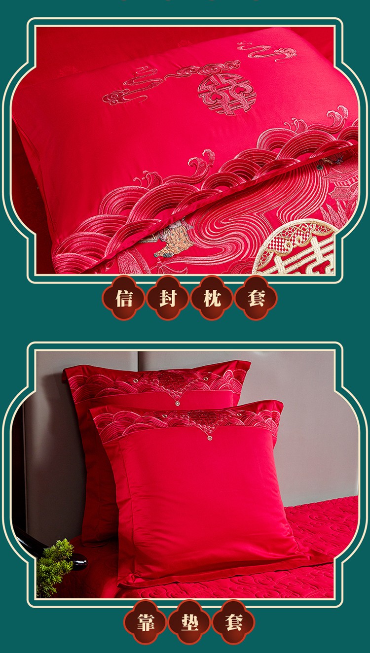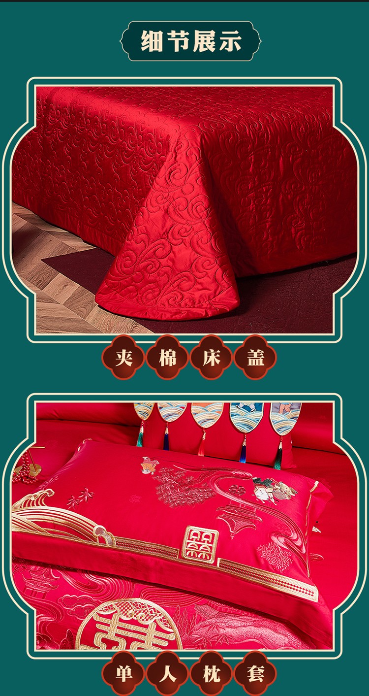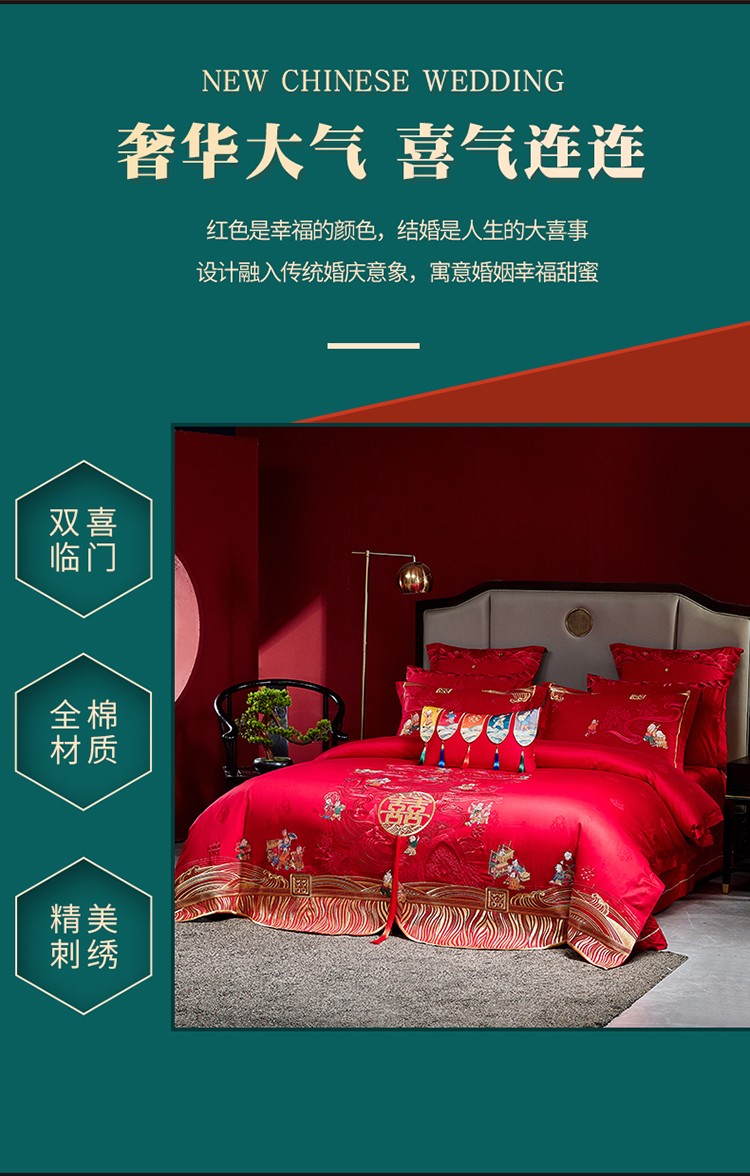 当前位置: 91家纺网 > 商品网购 > 床品套件 > 四件套 > 婚庆四件套 > 2022新款高支高密长绒棉婚庆套件 欢喜百子