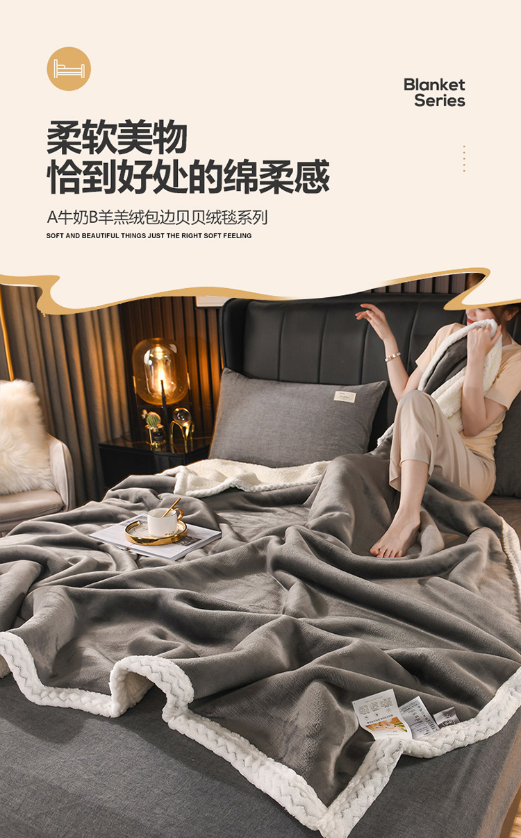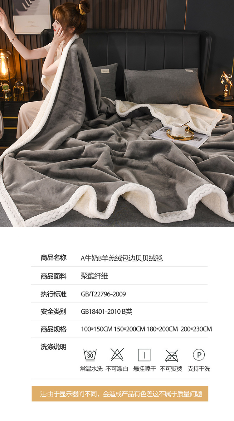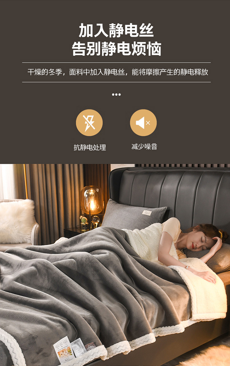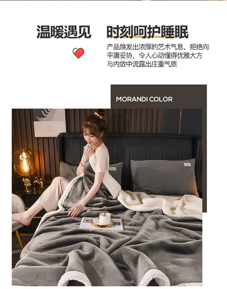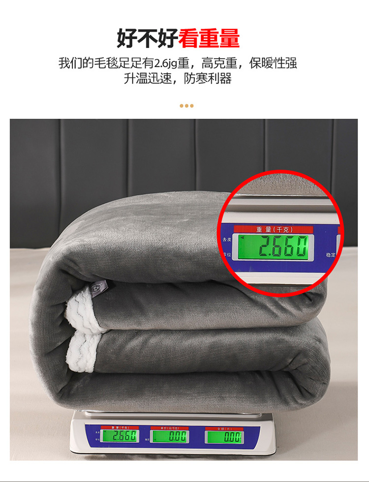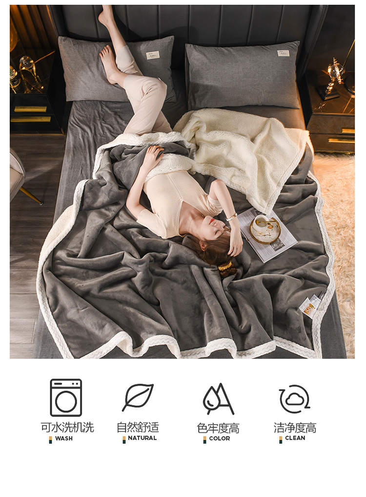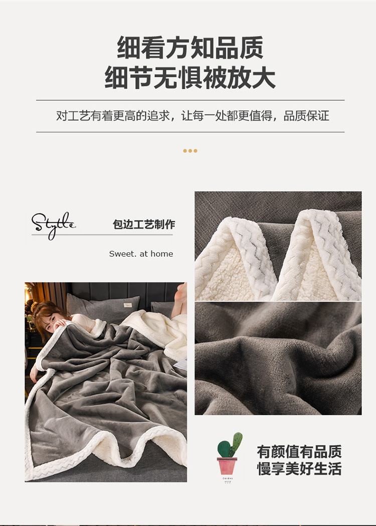 商品名称:席之家2023款纯色羊羔绒复合毛毯休闲毯盖毯空调毯子 曜灰