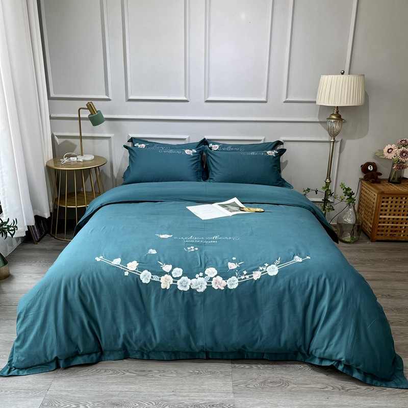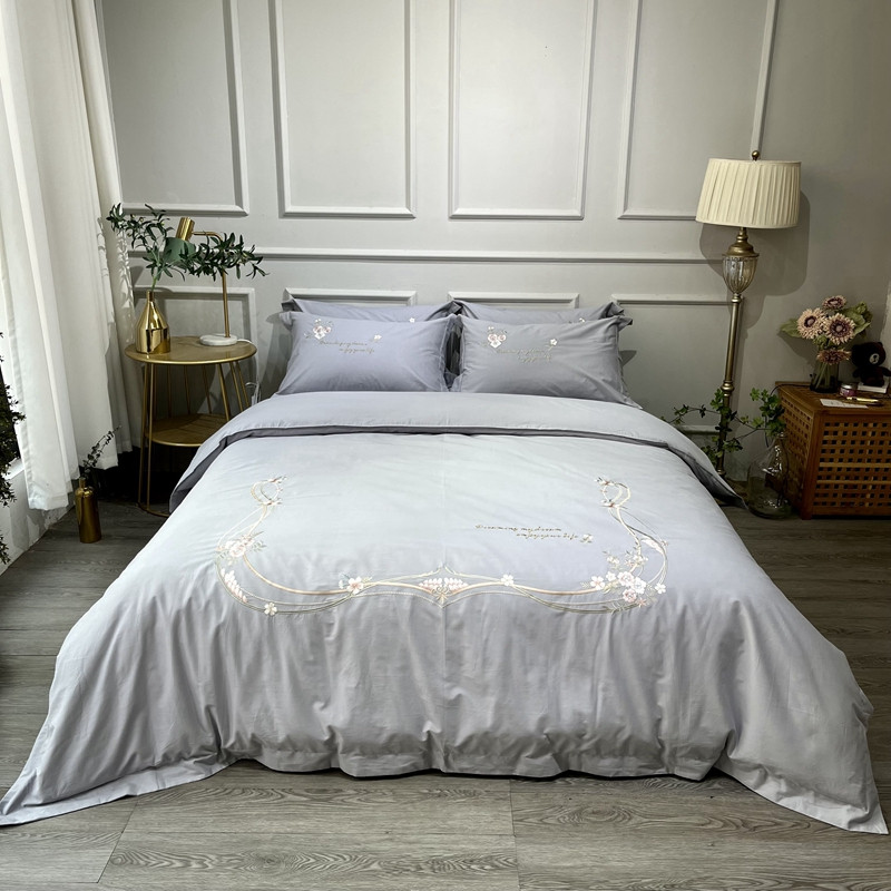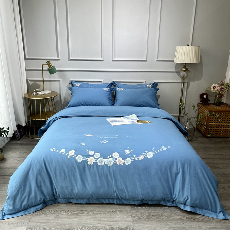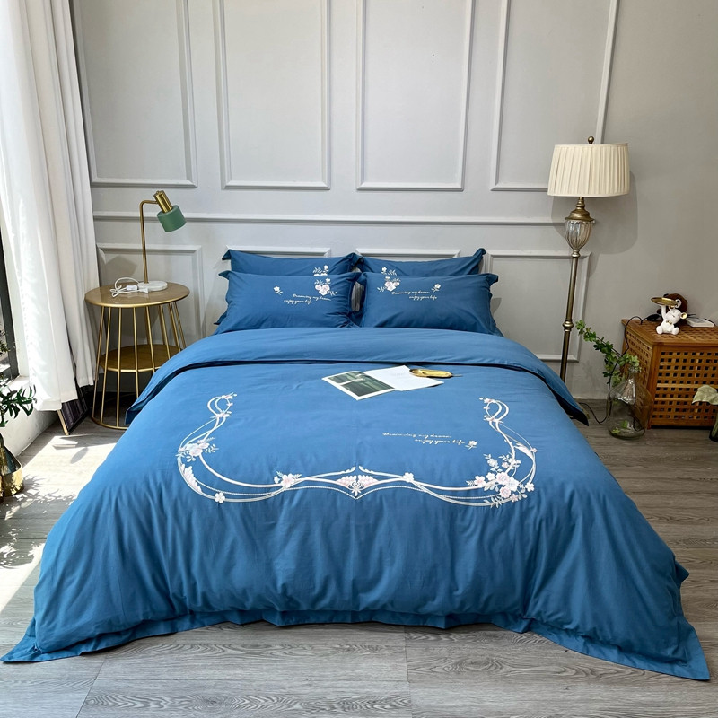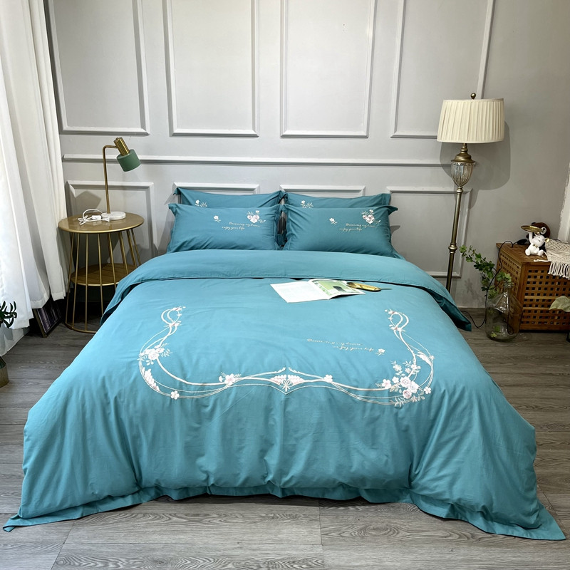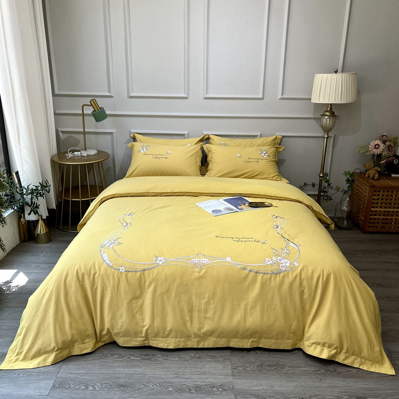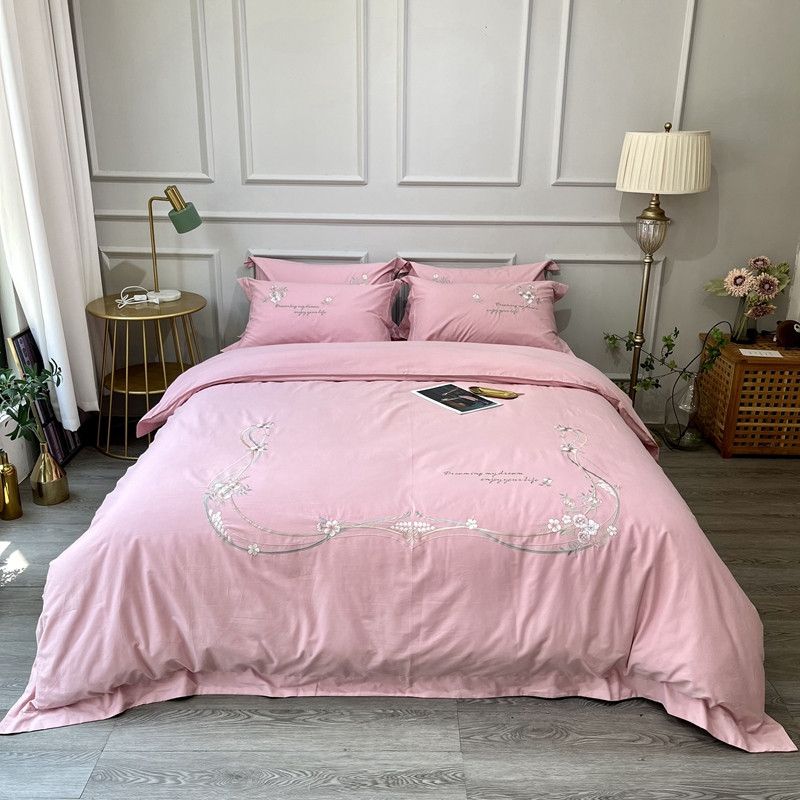 (总)薏思 2022新款60长绒棉纯色宽边刺绣四件套