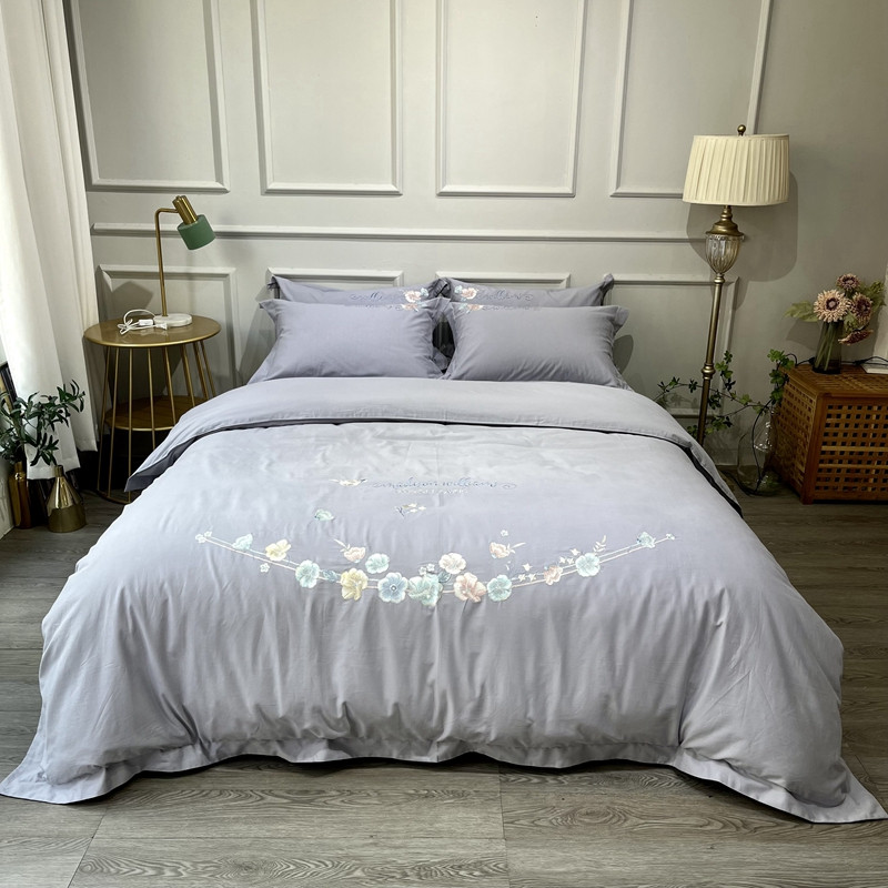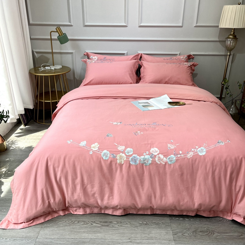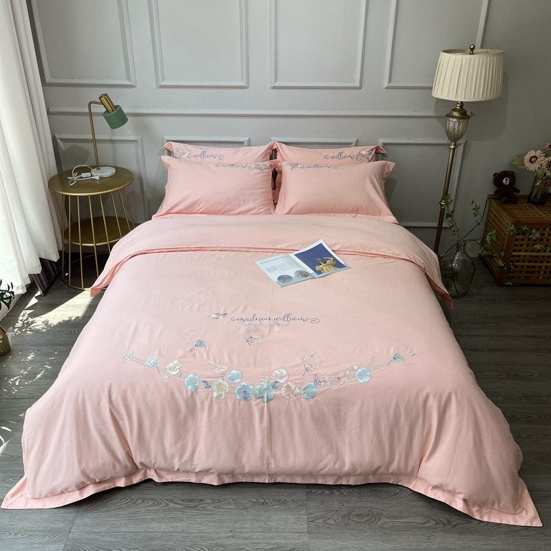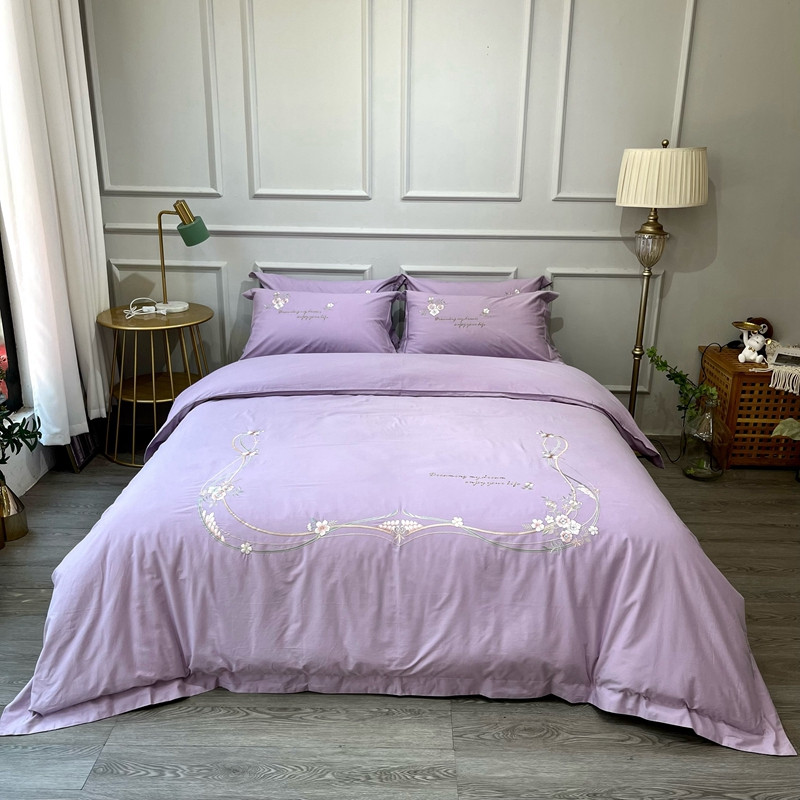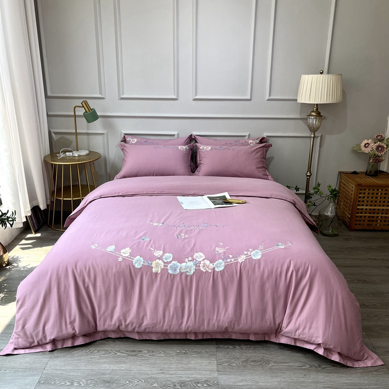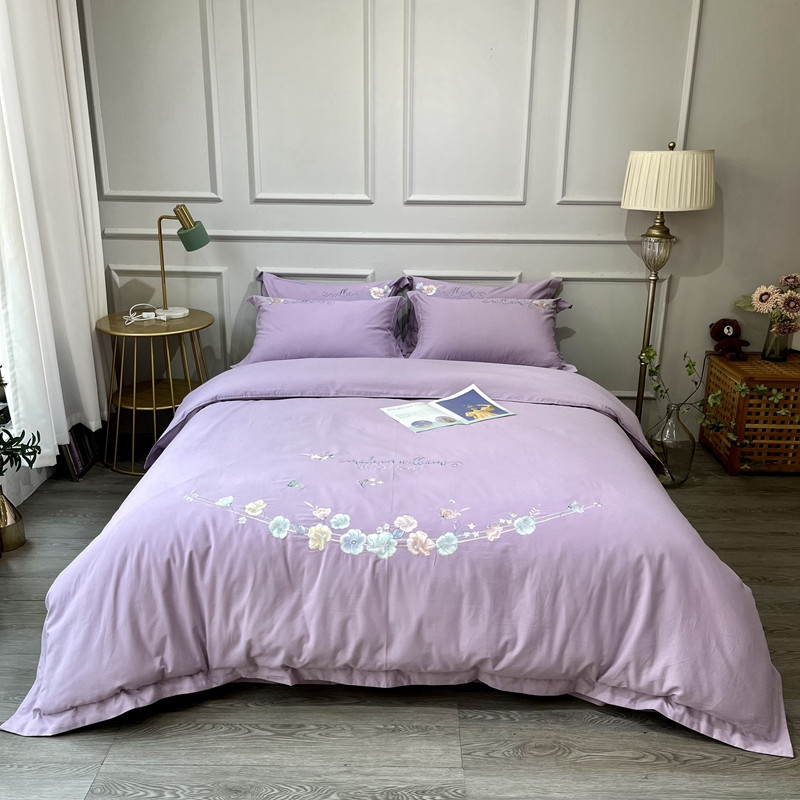 (总)薏思家纺 2025新款100支全棉澳棉刺绣-兰芝系列四件套,丁香紫 Purple lilac,春杏奶黄 Spring apricot,琉璃粉 Glass pink,竹青绿 Bamboo green