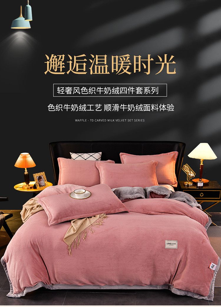 当前位置: 91家纺网 > 商品网购 > 床品套件 > 四件套 > 牛奶绒四件套 > 小牛席业 2022新款色织牛奶绒四件套 色织牛奶绒(豆沙)