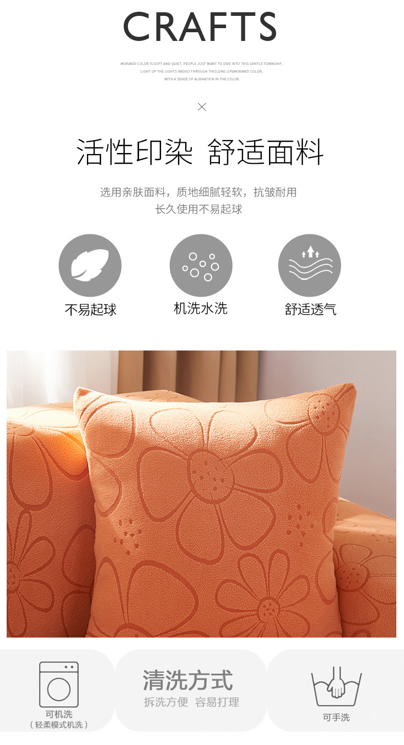 商品名称:逐日沙发套 2023新款阳离子雕花沙发套 太阳花 桔黄