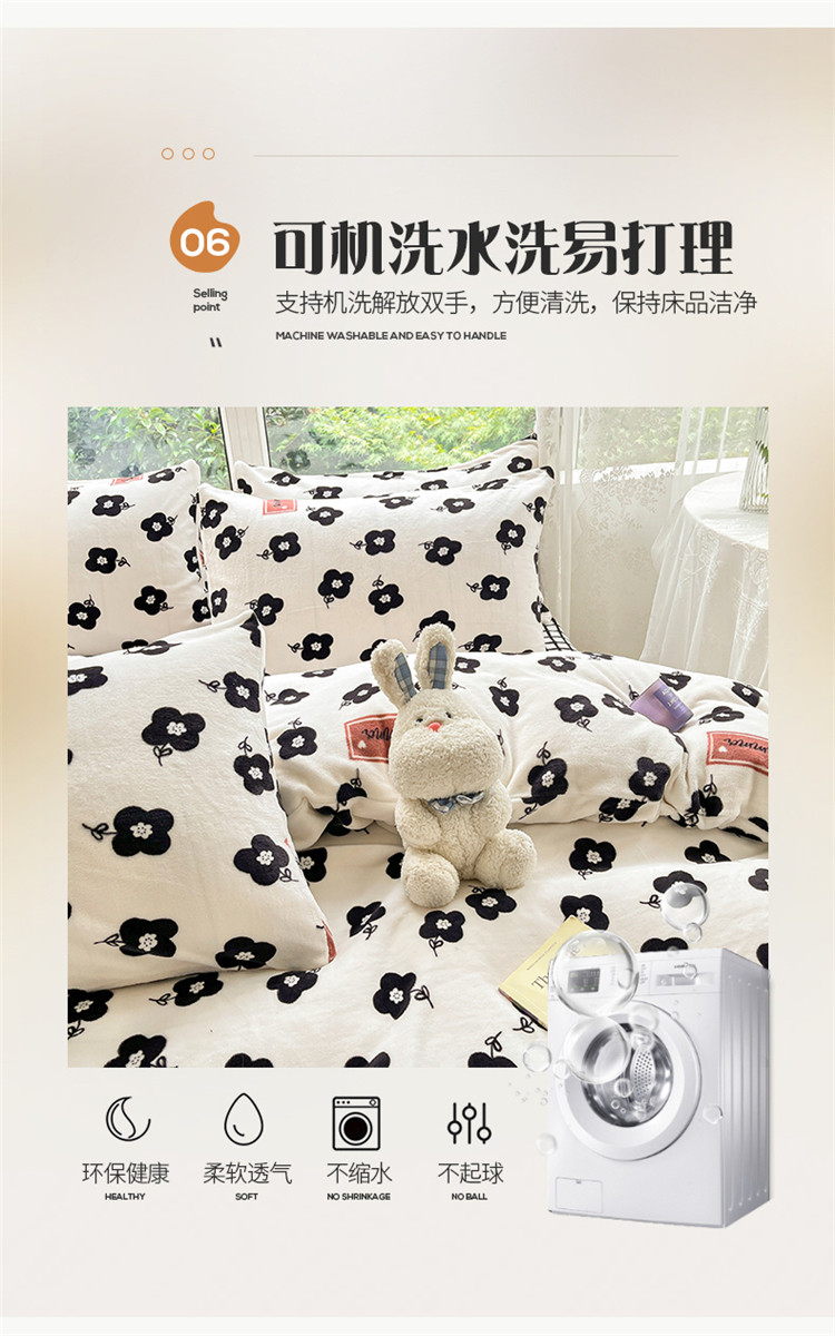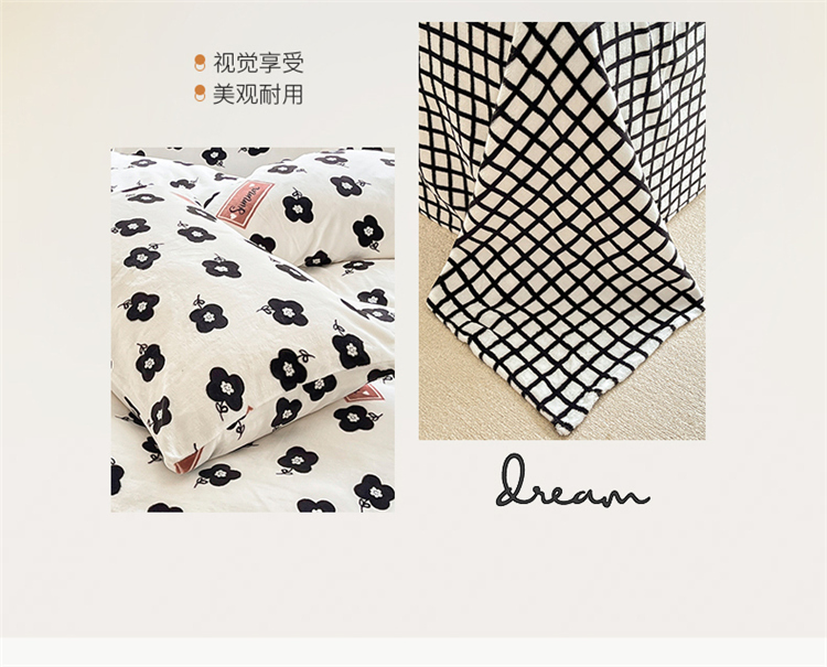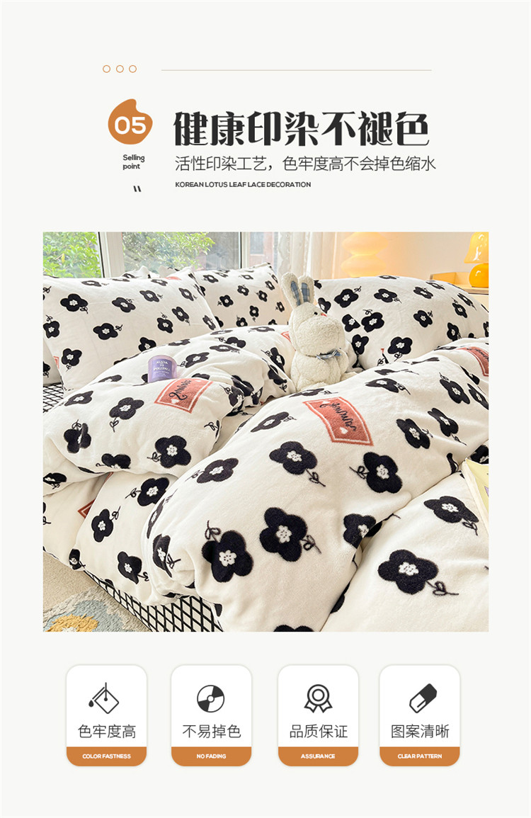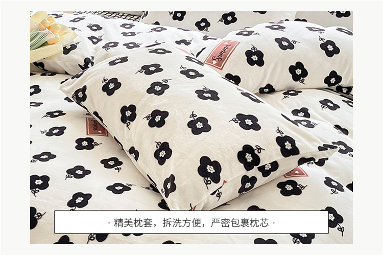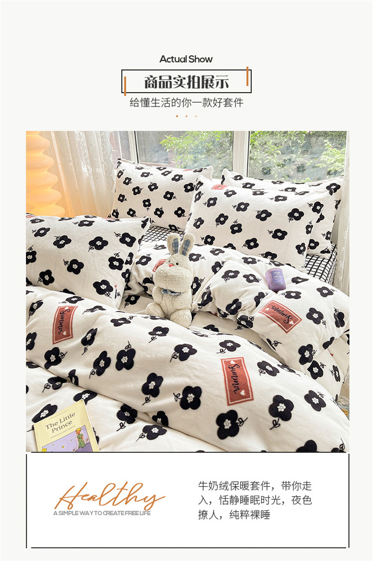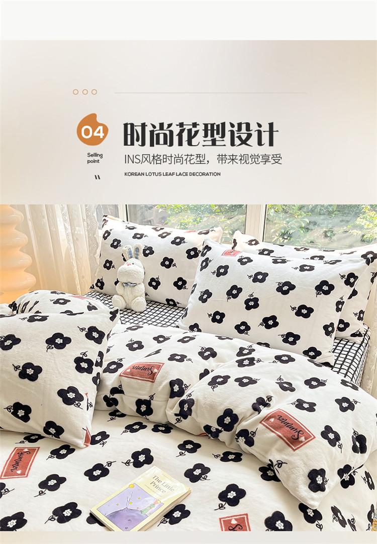商品名称:桃子家居 2022新款ins小清新韩系加厚牛奶绒系列四件套 绒-依诺