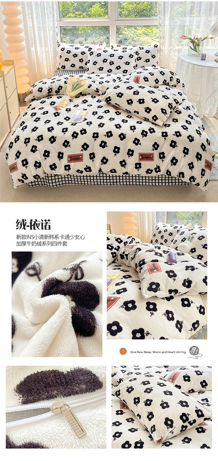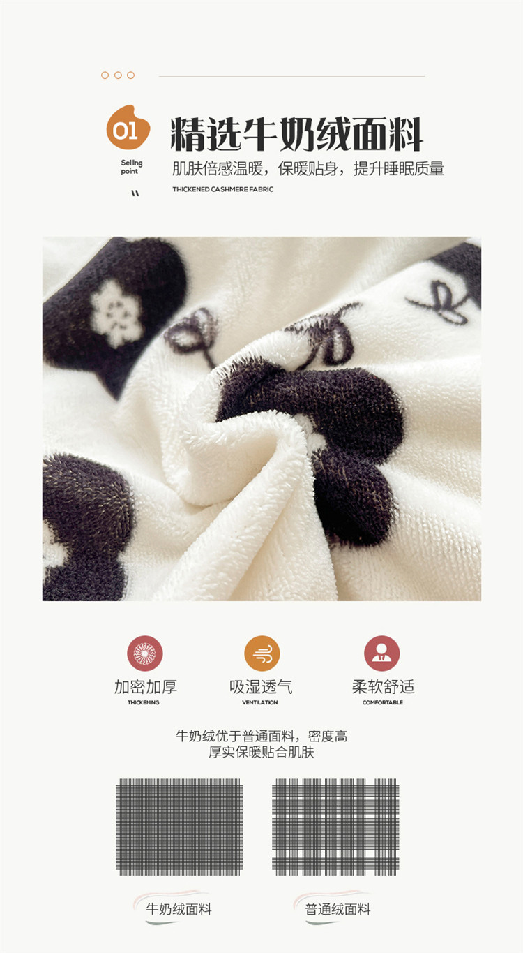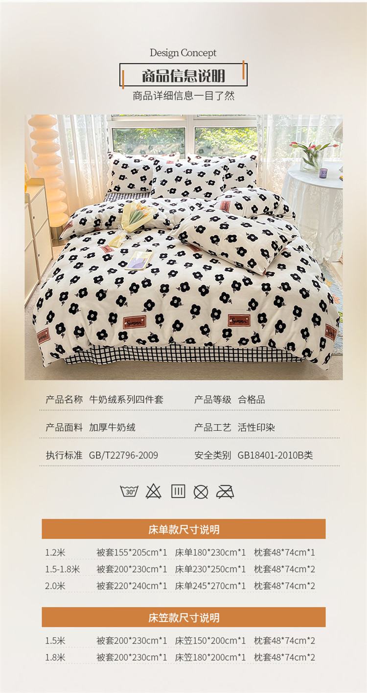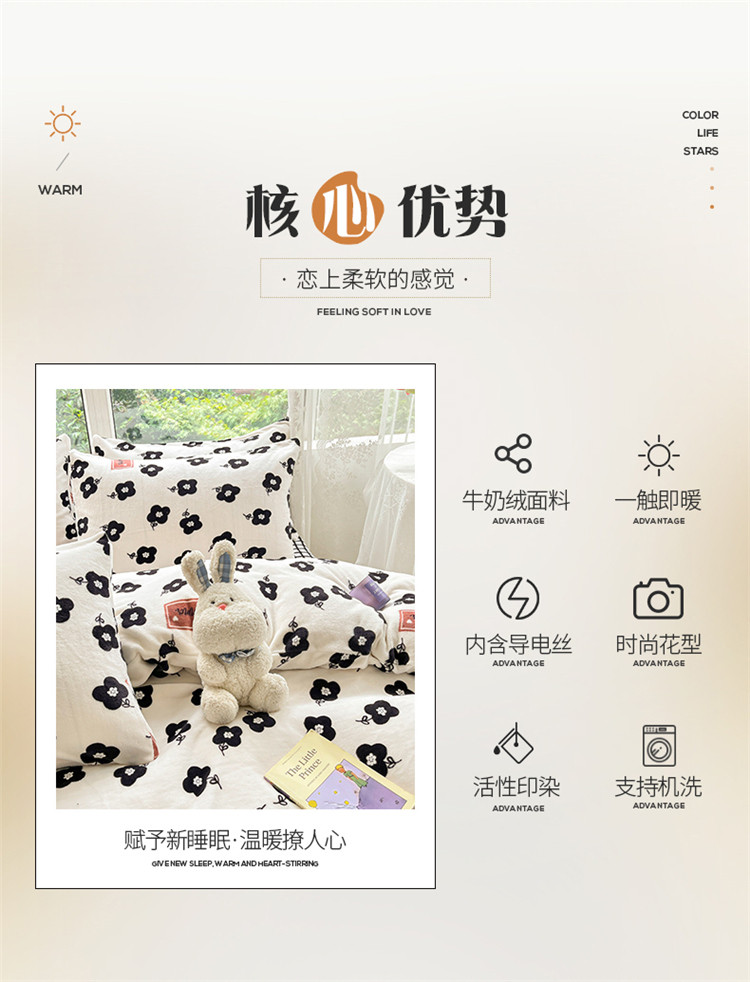 商品名称:桃子家居 2022新款ins小清新韩系加厚牛奶绒系列四件套 绒-依诺