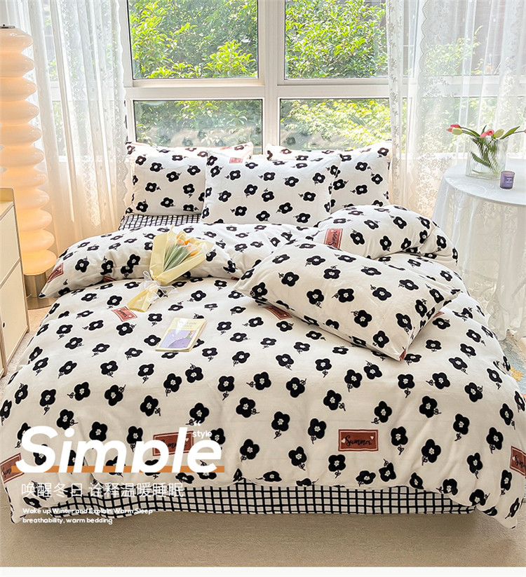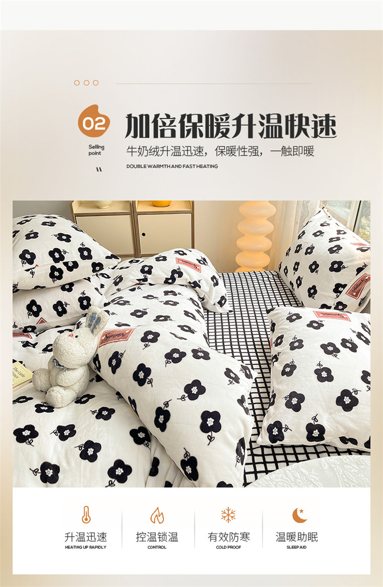 桃子家居 2022新款ins小清新韩系加厚牛奶绒系列四件套 绒-依诺