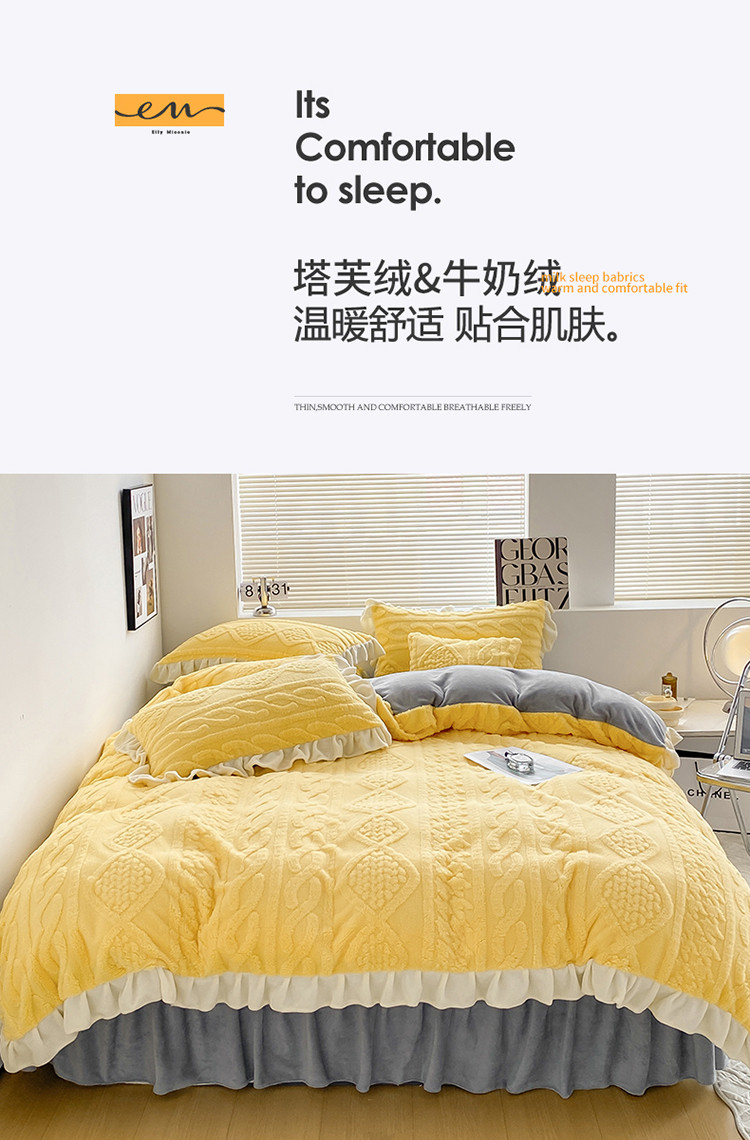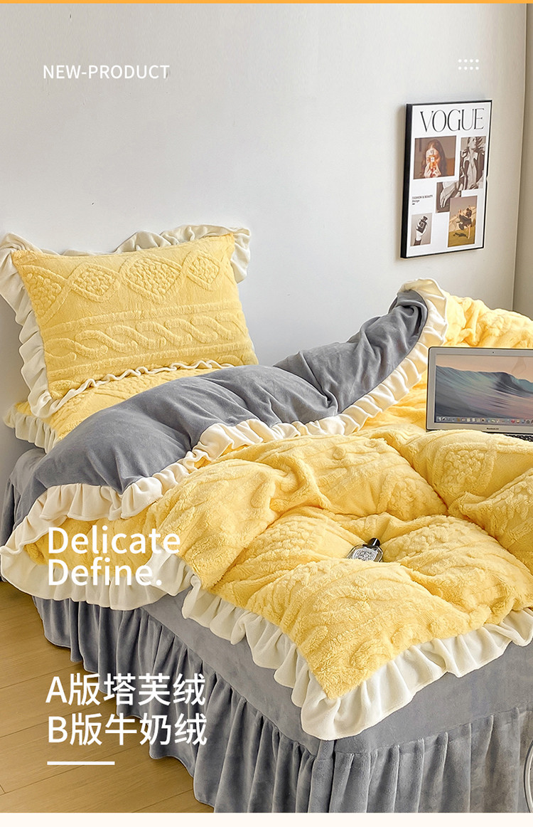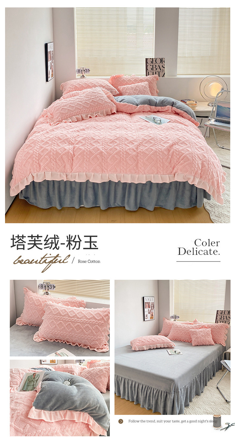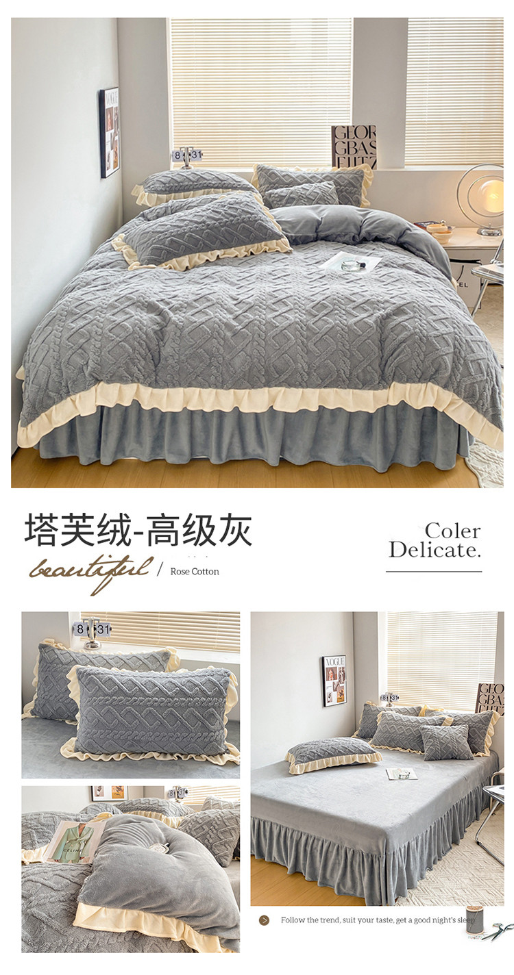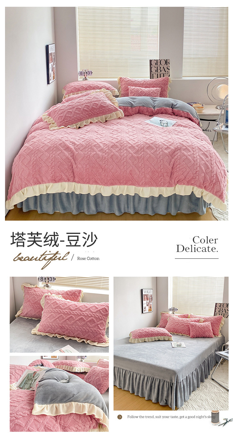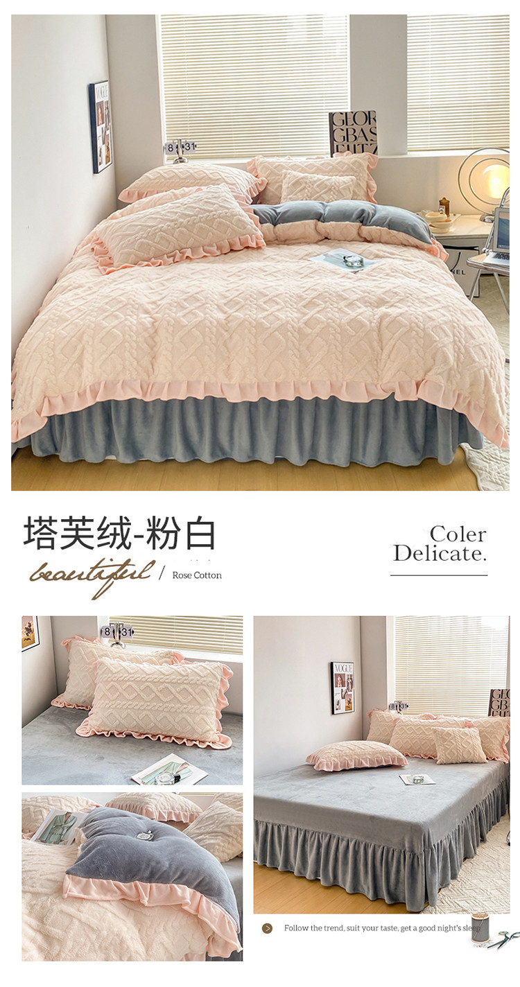 (总)蝶帕 2024新韩版花边塔芙绒四件套牛奶绒三件套