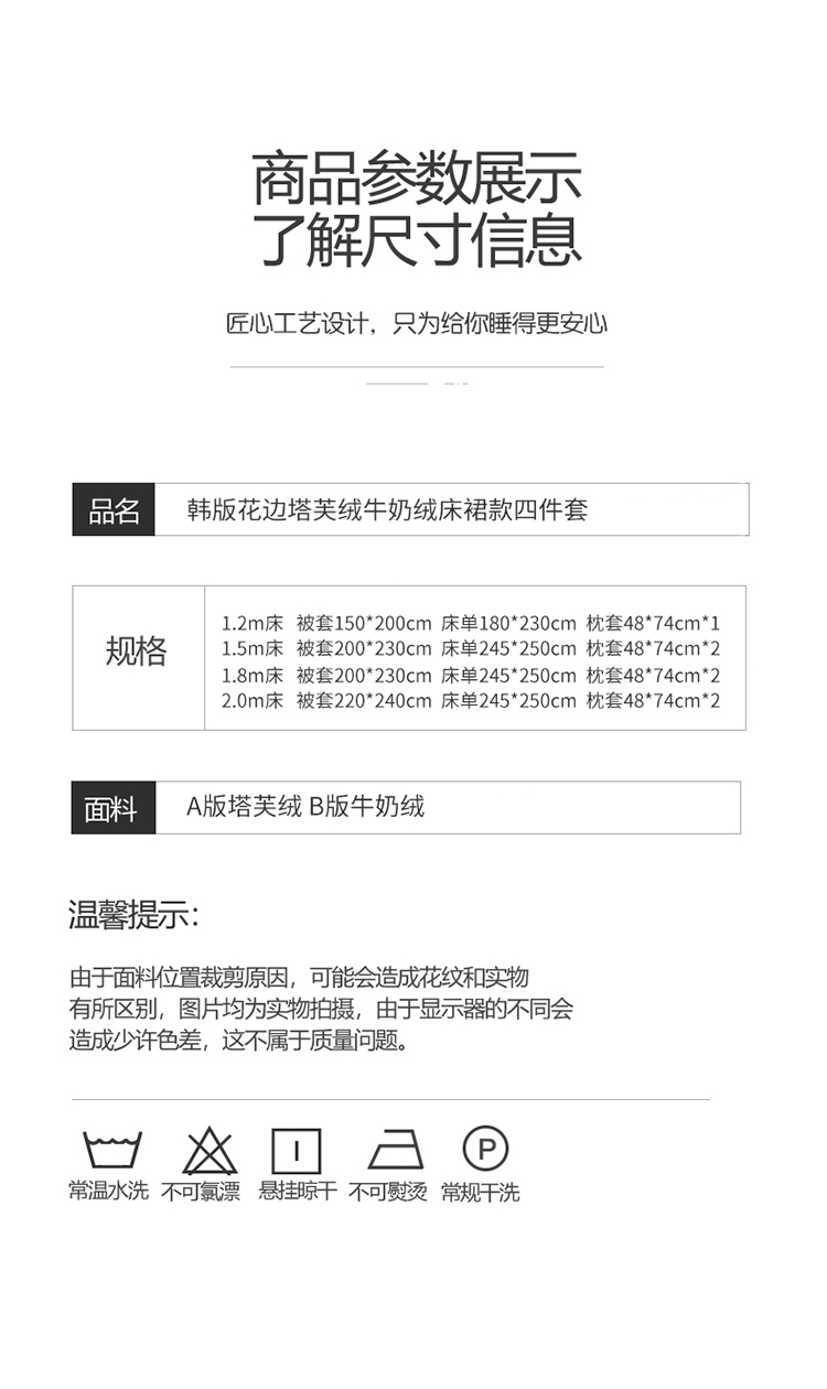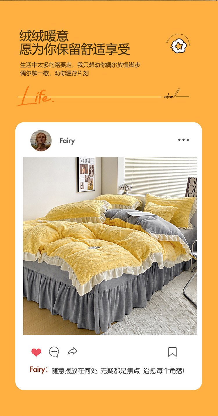 商品名称:(总)蝶帕 2024新韩版花边塔芙绒四件套牛奶绒三件套