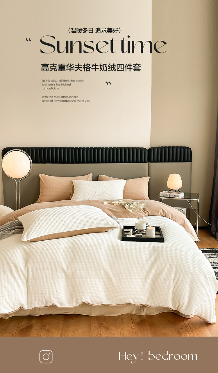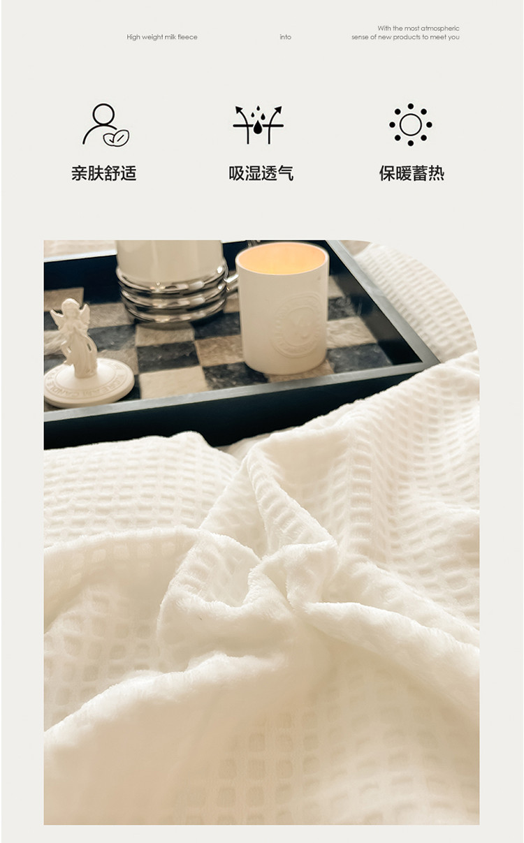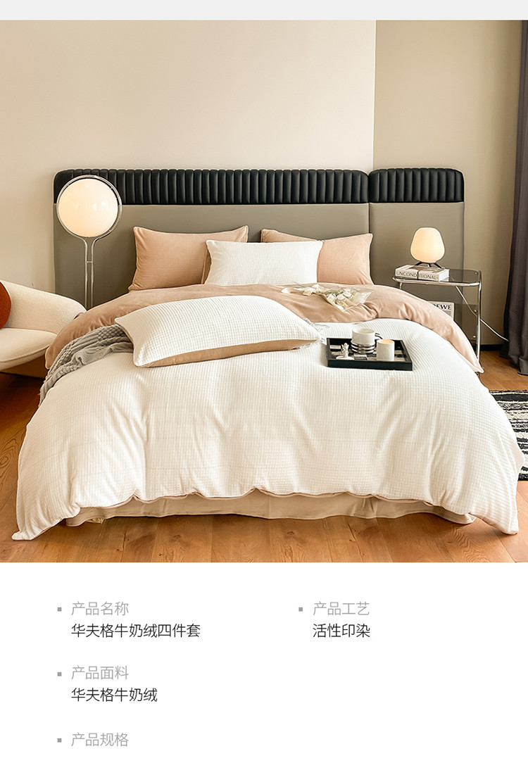 商品名称:雅居纺 2022新款高克重华夫格牛奶绒四件套 华夫格绒—白卡其