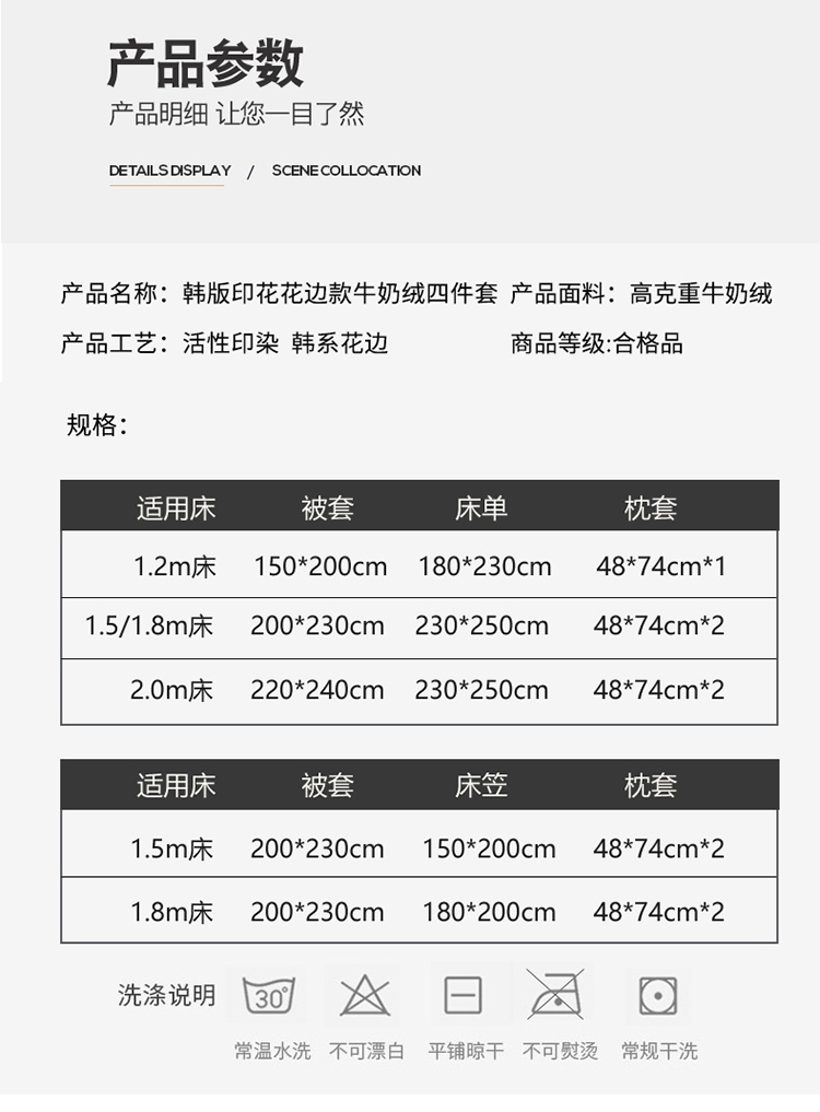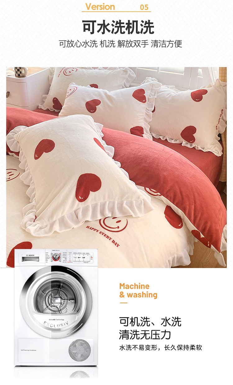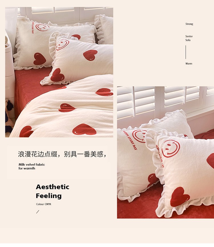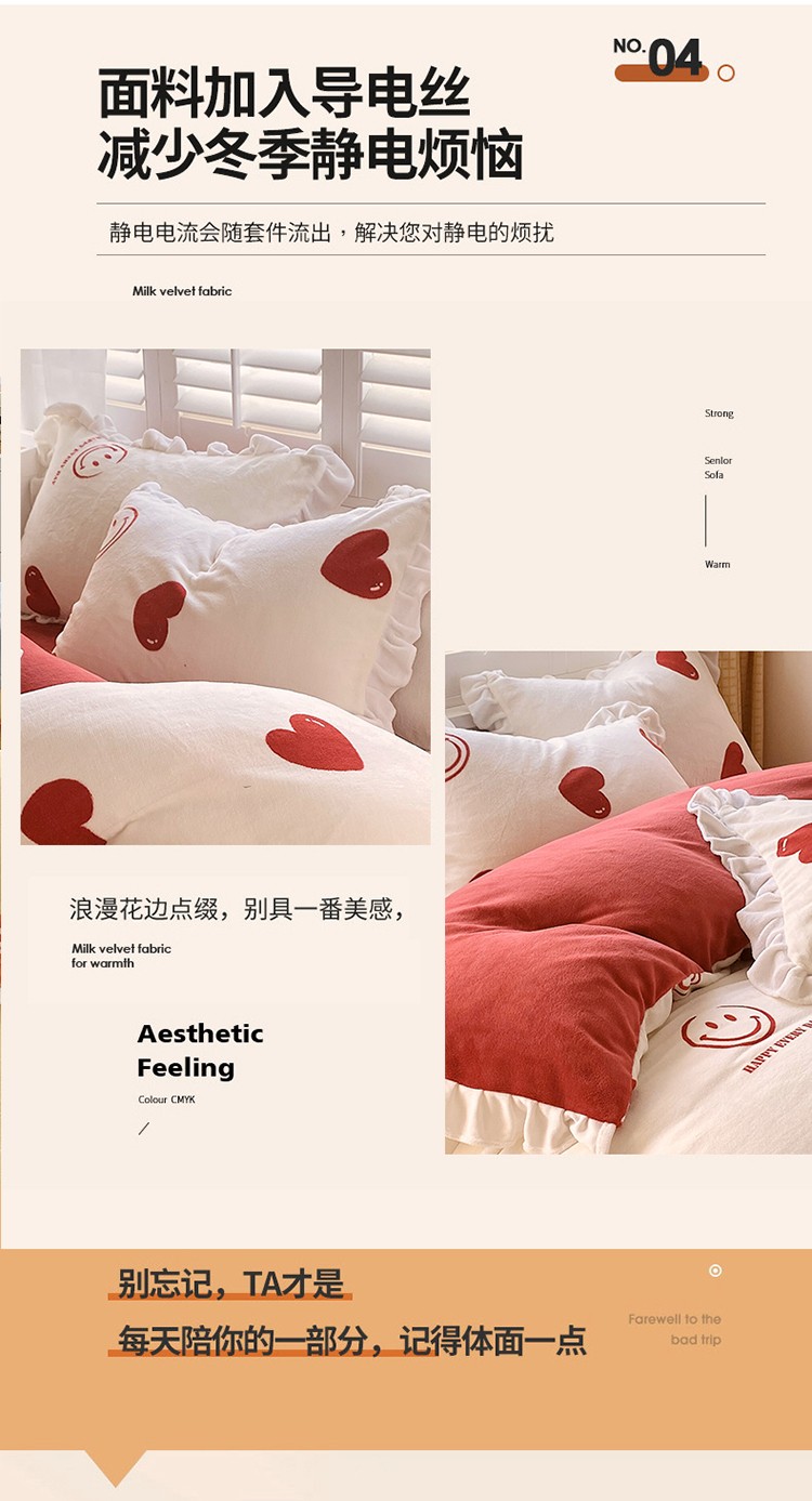 商品名称:雅绅阁 2022新款高克重印花牛奶绒四件套花边款直播 一见倾心