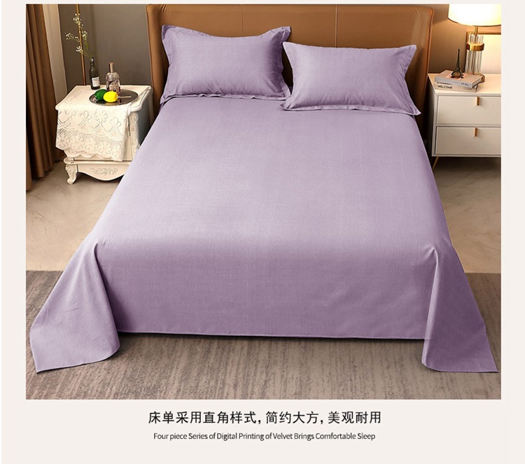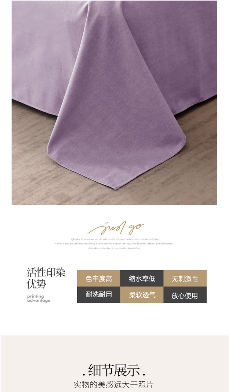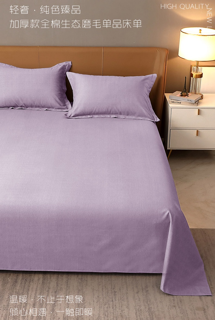 晶缦家纺 2022新款加厚全棉纯色生态磨毛多规格系列单床单 纯依-浅紫