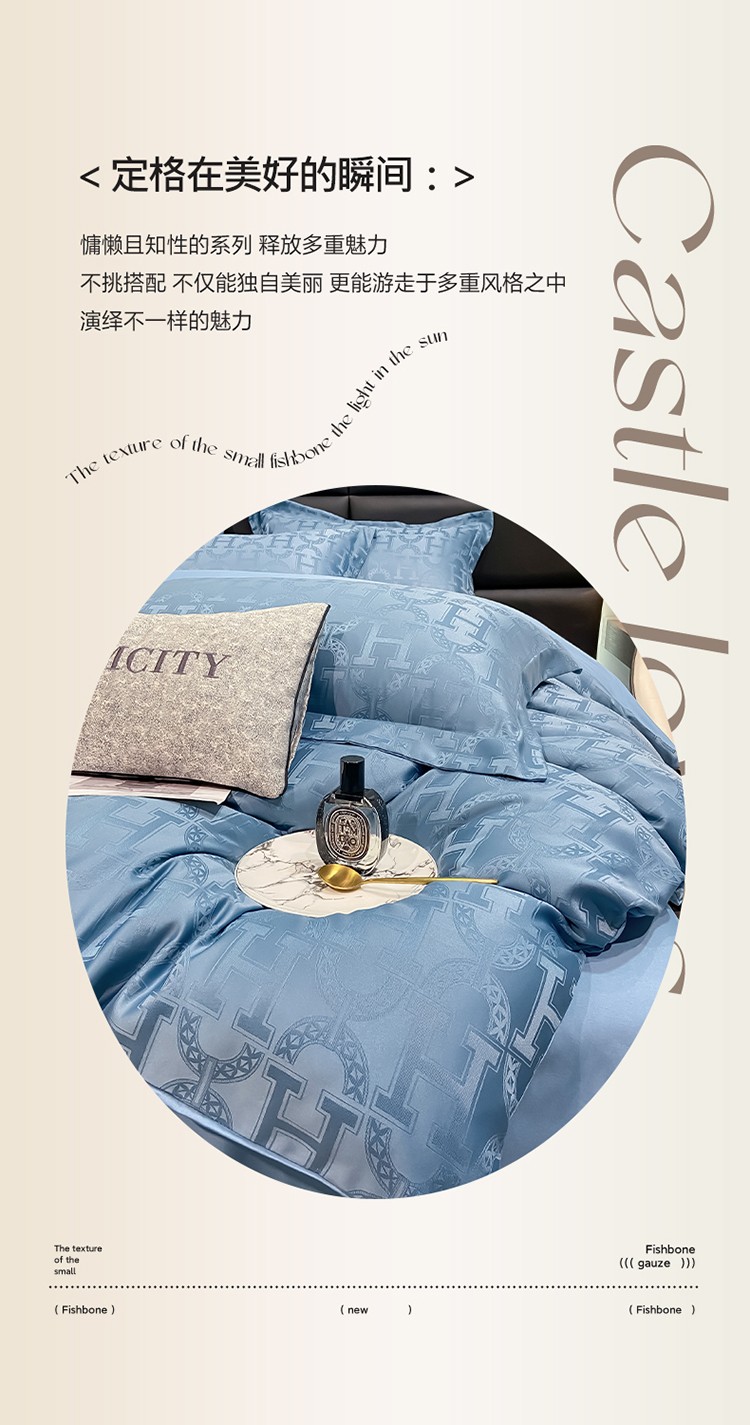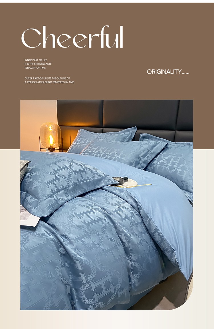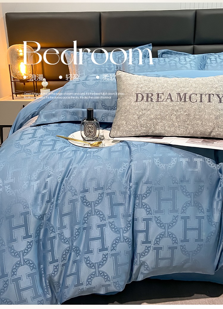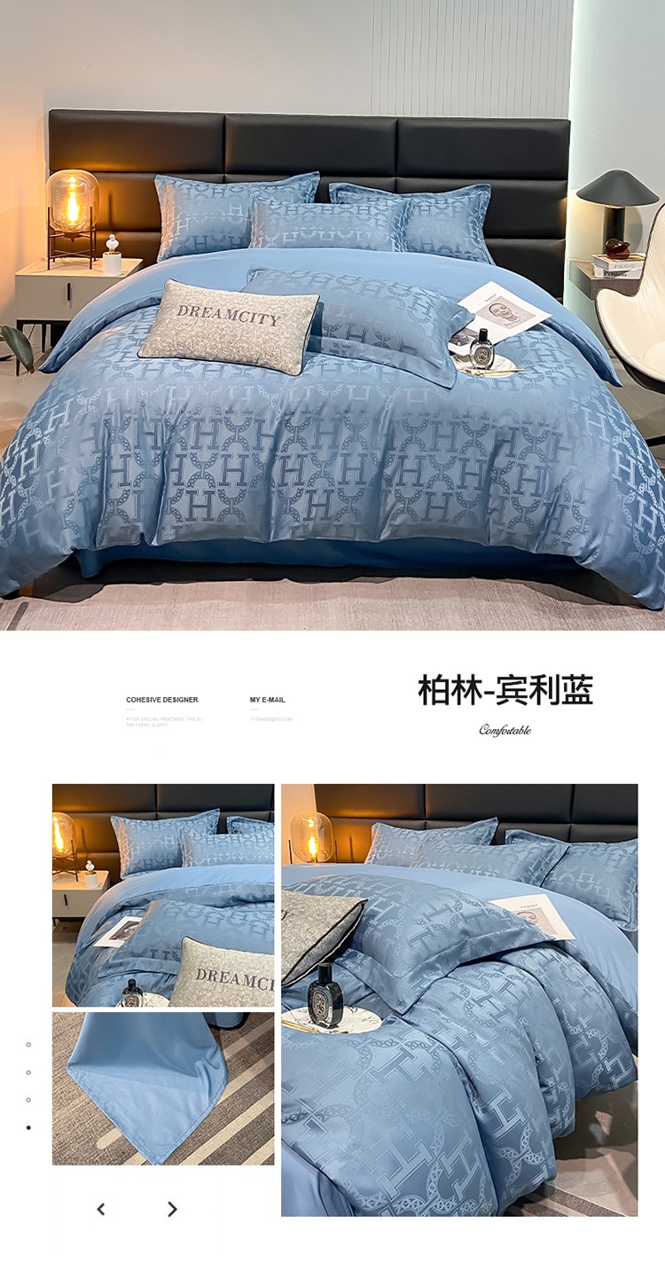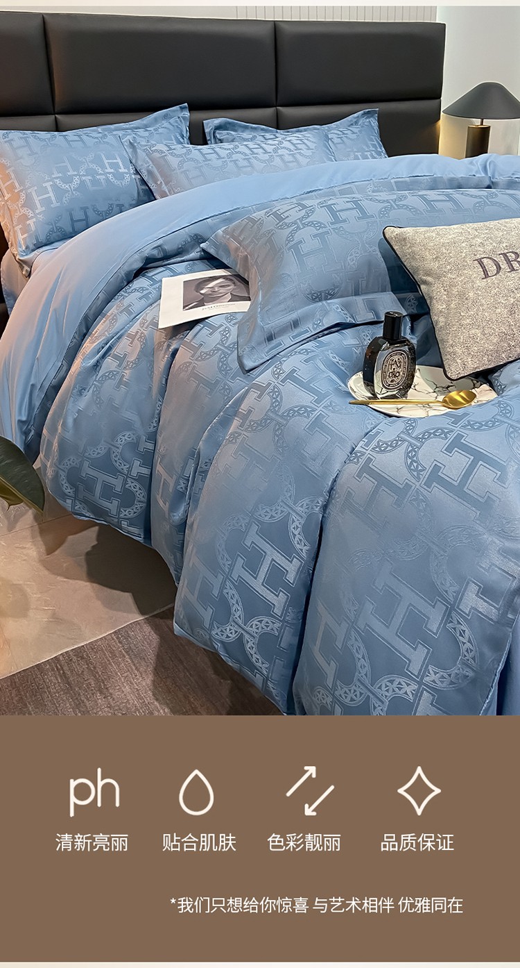 遇见家居生活馆 2023新款水洗贡缎提花四件套 柏林-宾利蓝
