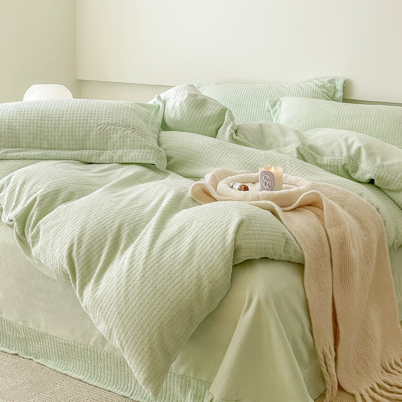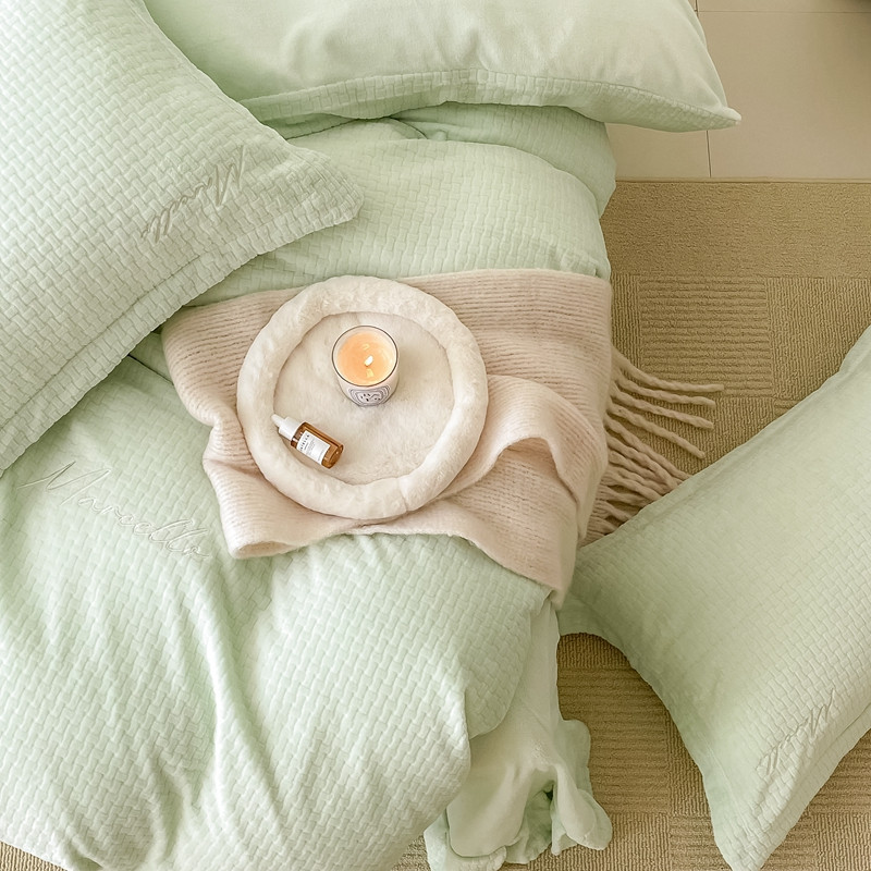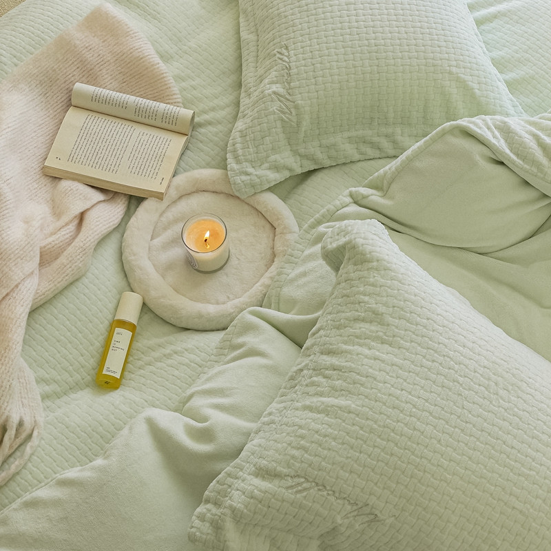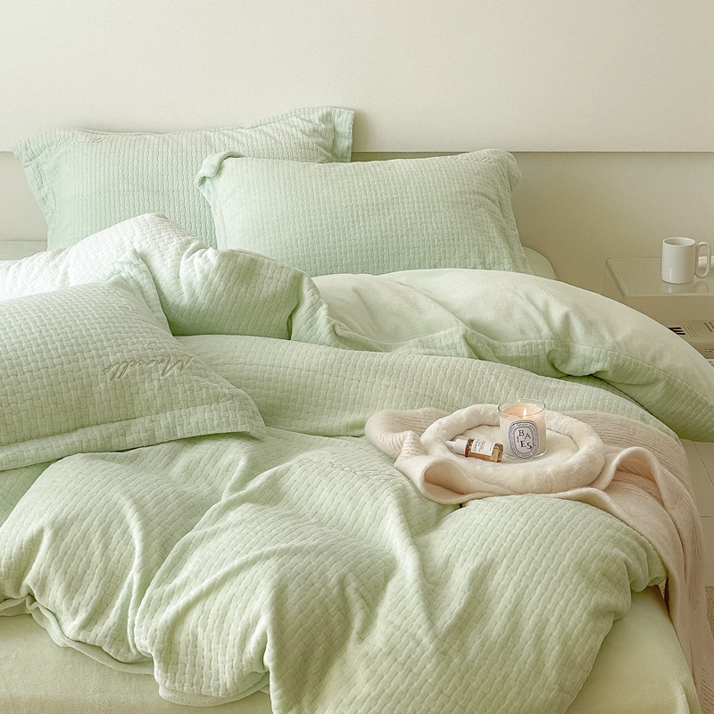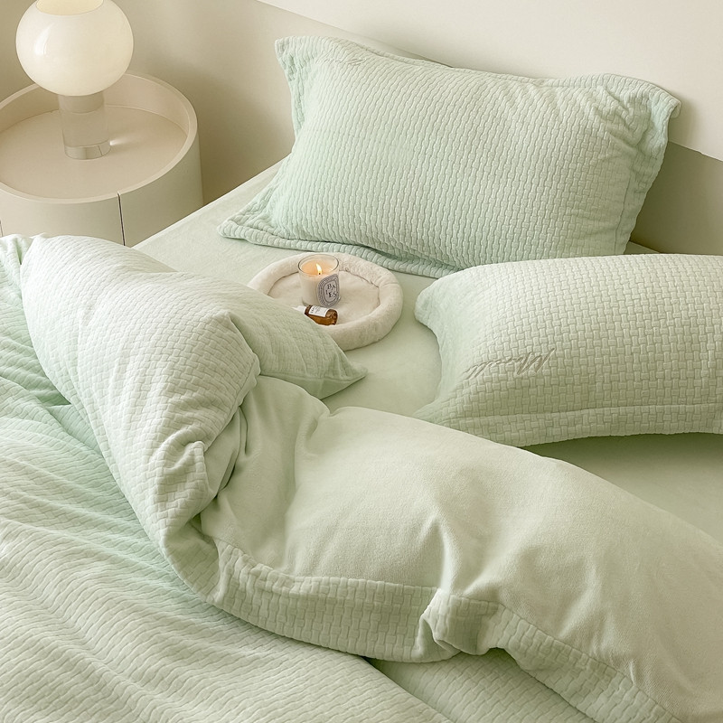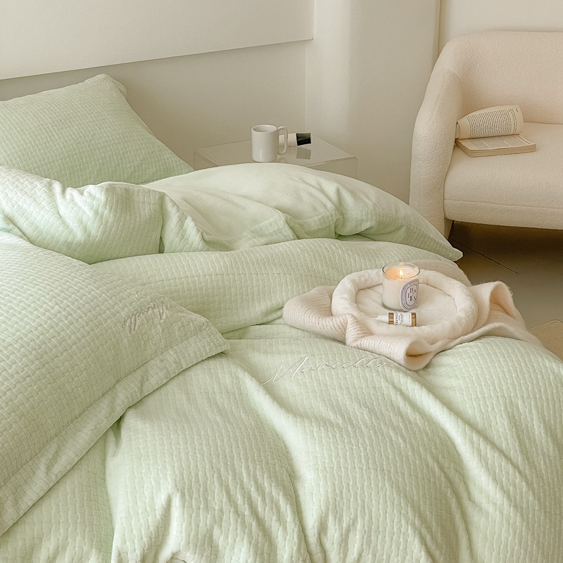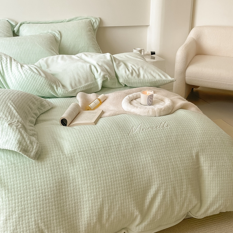 商品名称:潘朵拉 2022新款编织刺绣牛奶绒四件套 编织绿
