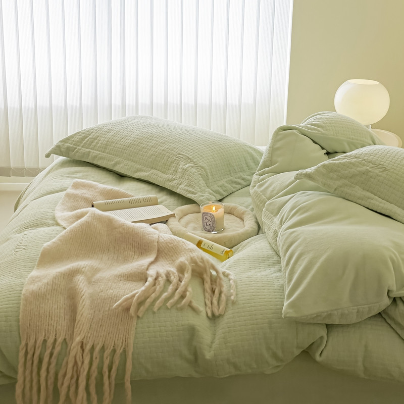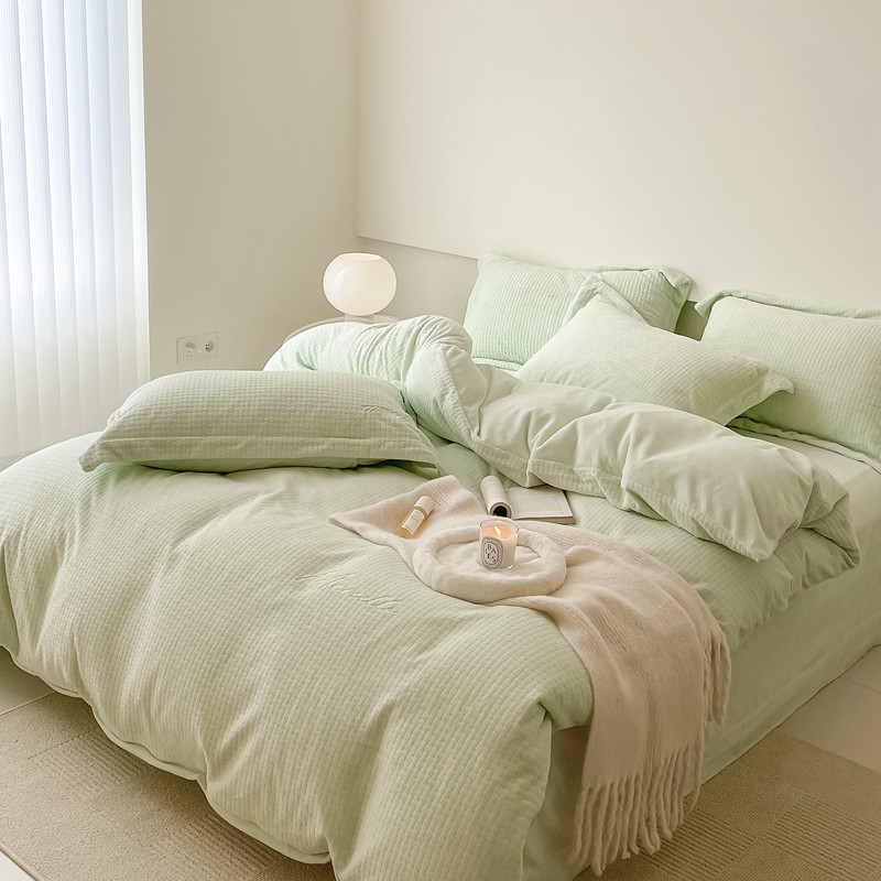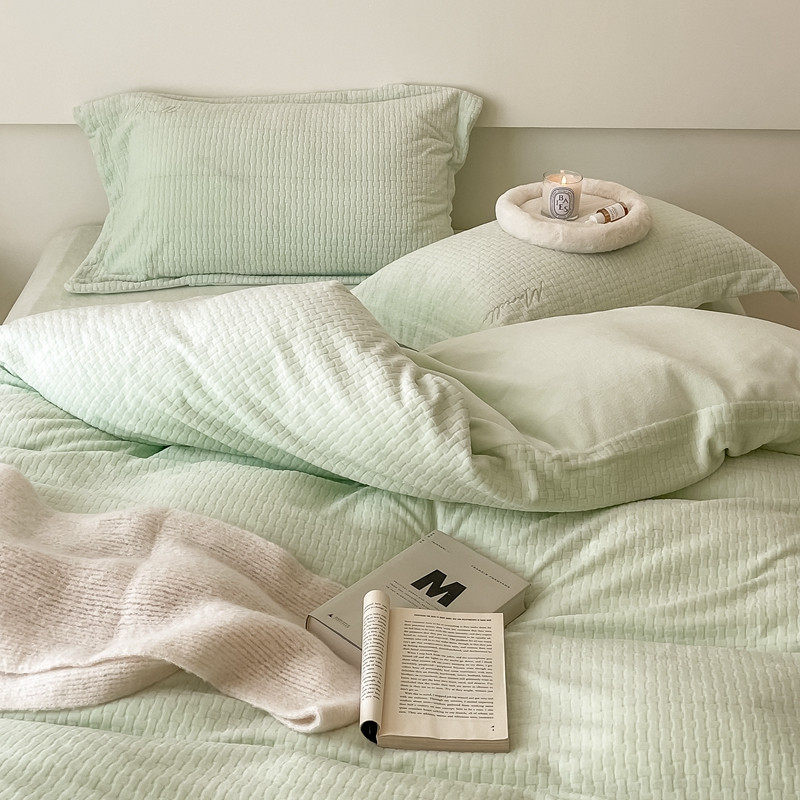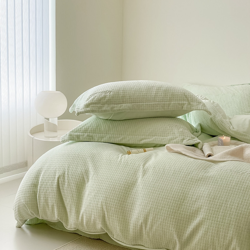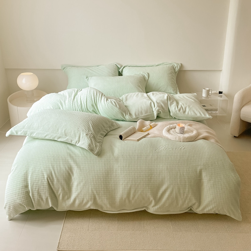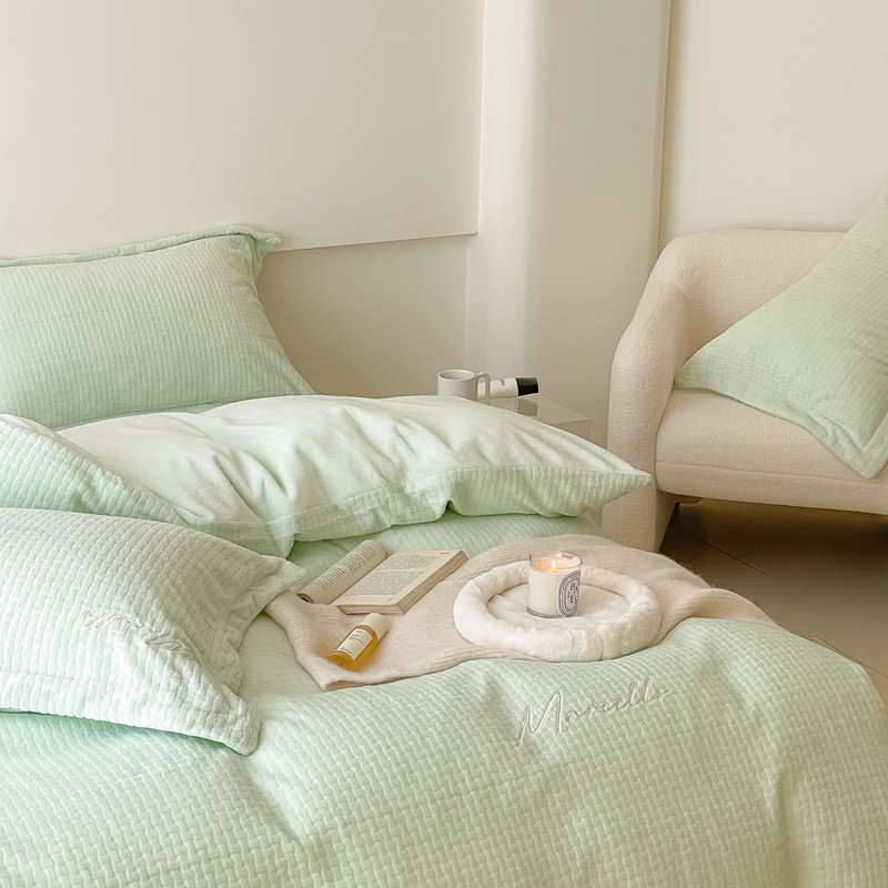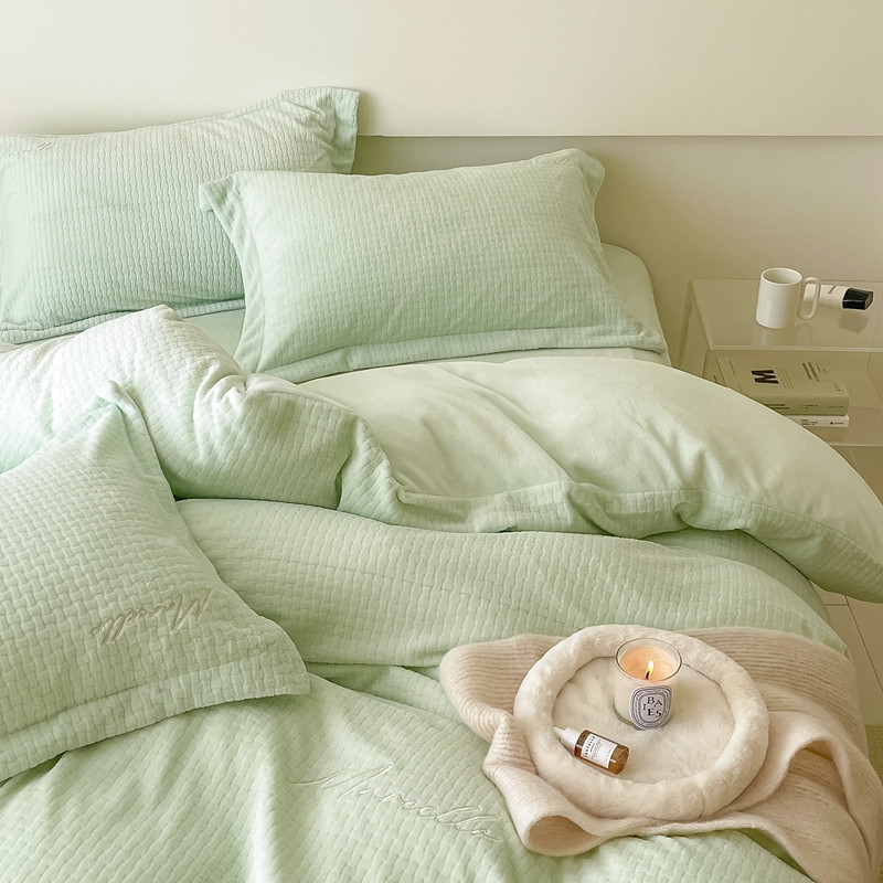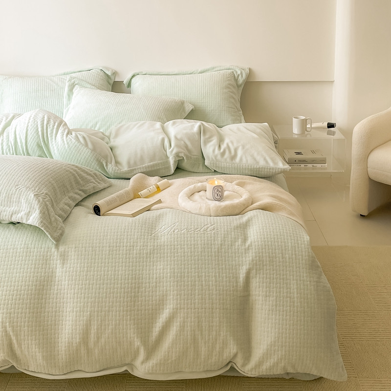商品名称:潘朵拉 2022新款编织刺绣牛奶绒四件套 编织绿