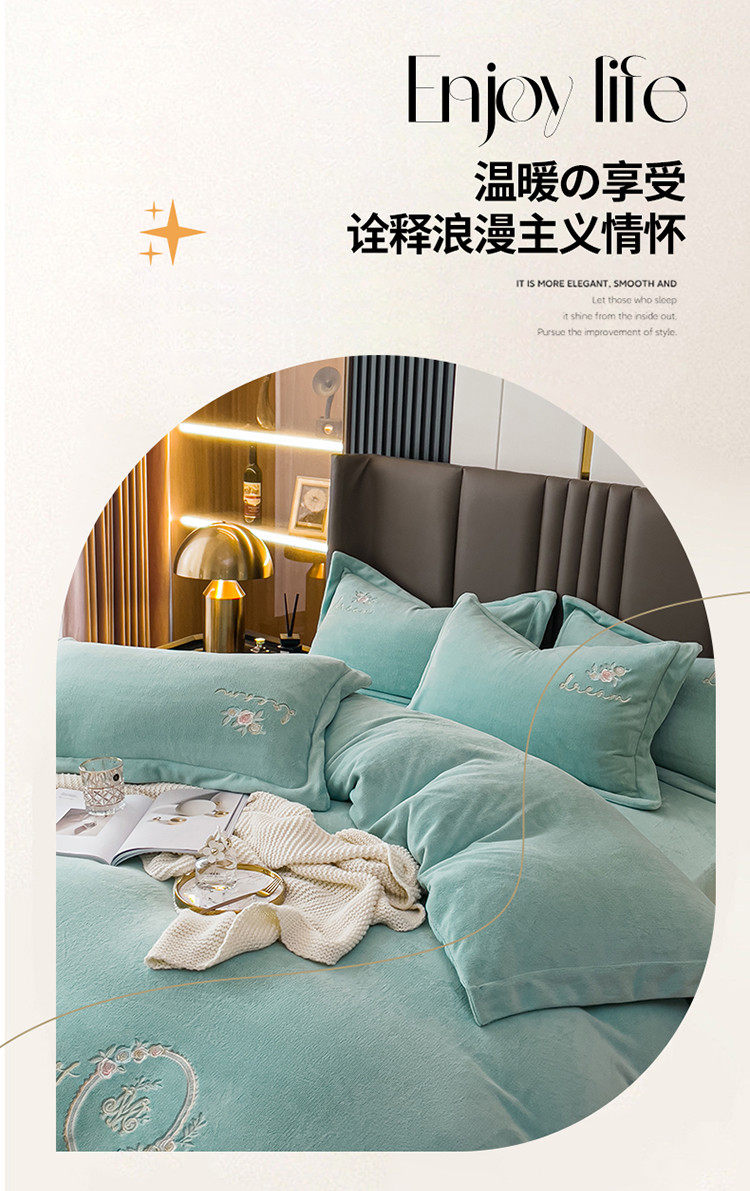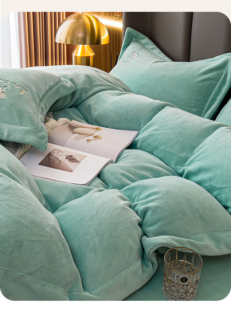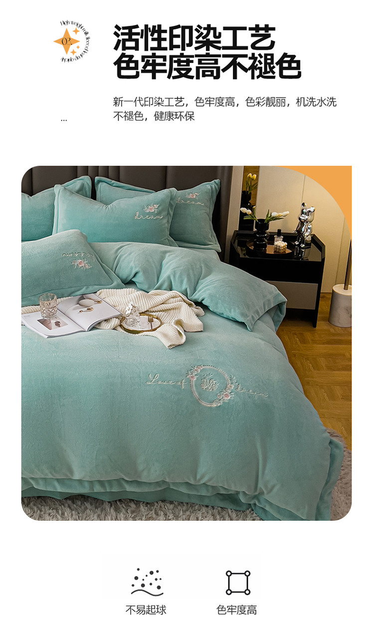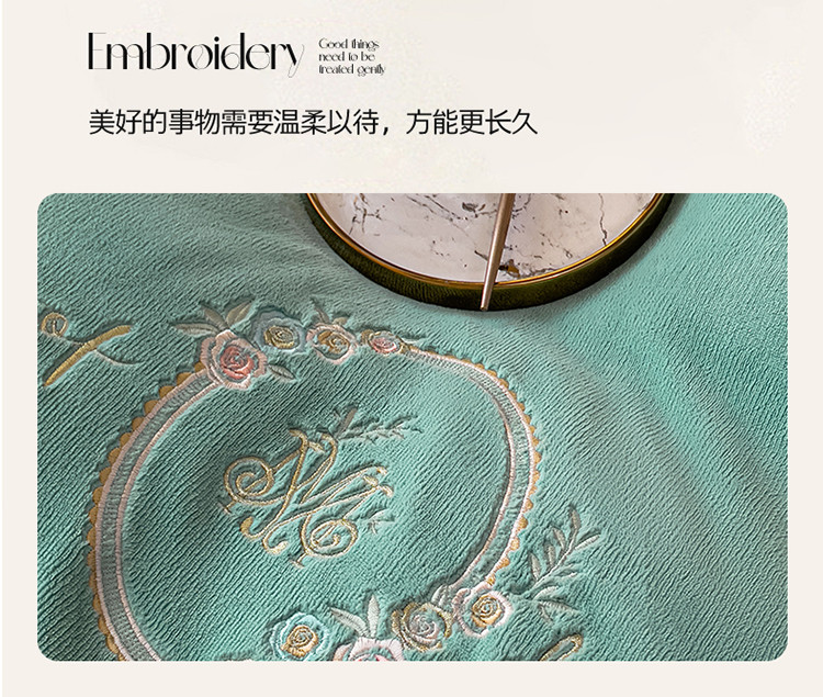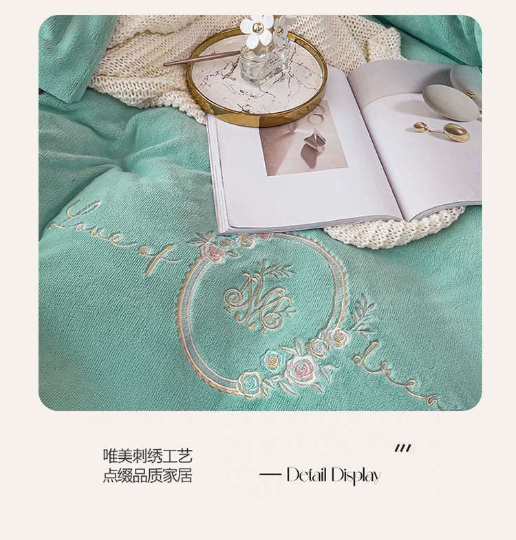 商品名称:名品优仓 2022新款图兰朵系列牛奶绒刺绣四件套 图兰朵-松石绿