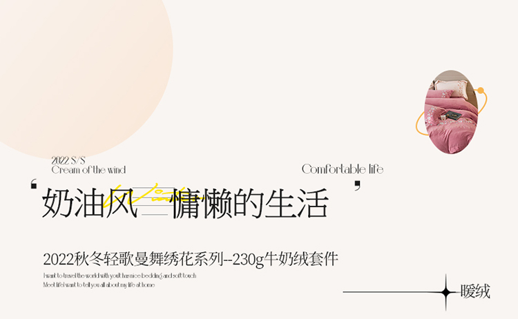 商品名称:名品优仓 2022新款轻歌曼舞系列230g牛奶绒绣花四件套 轻歌曼舞-豆沙